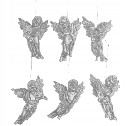 6 ШТ. СРІБНІ АНГЕЛИ ФЕЛЕЖКИ ЯЛИНОВА ПРИКРАСА РІЗДВЯНА ПІДВІСКА