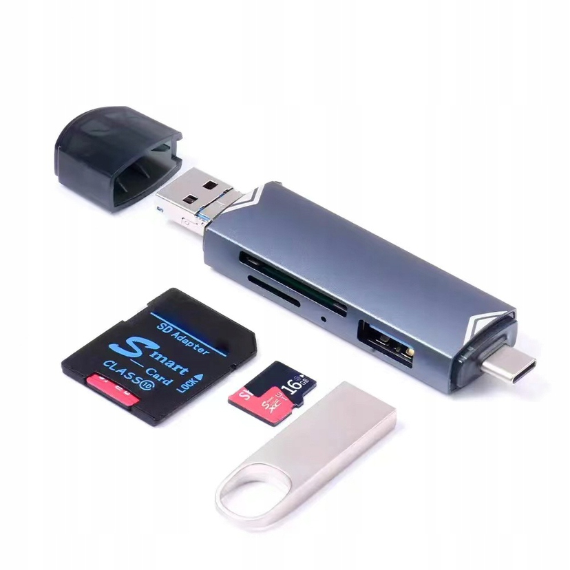 6-в-1 АДАПТЕР КАРТРИДЕР USB 3.0 USB-C SD microSD SDHC TF PLUG&PLAY СІРИЙ