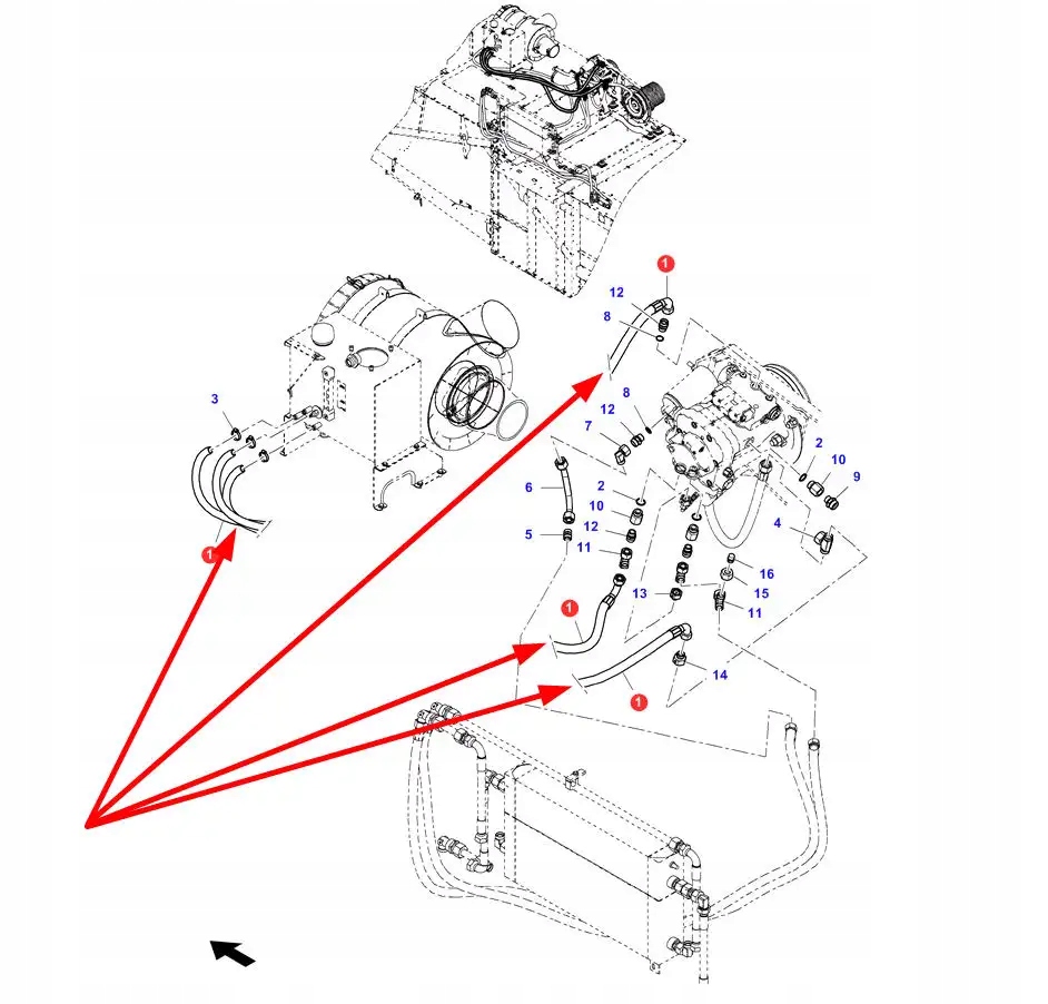 Оригінальний гідравлічний кабель з довжиною 2000 мм та номером каталогу 6247854m1, який використовується в зернових поєднує Marek Challenger, Fendt та Massey Ferguson.