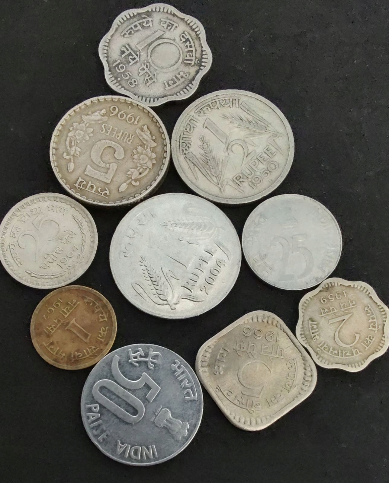 набір індійських монет, кожна різного типу