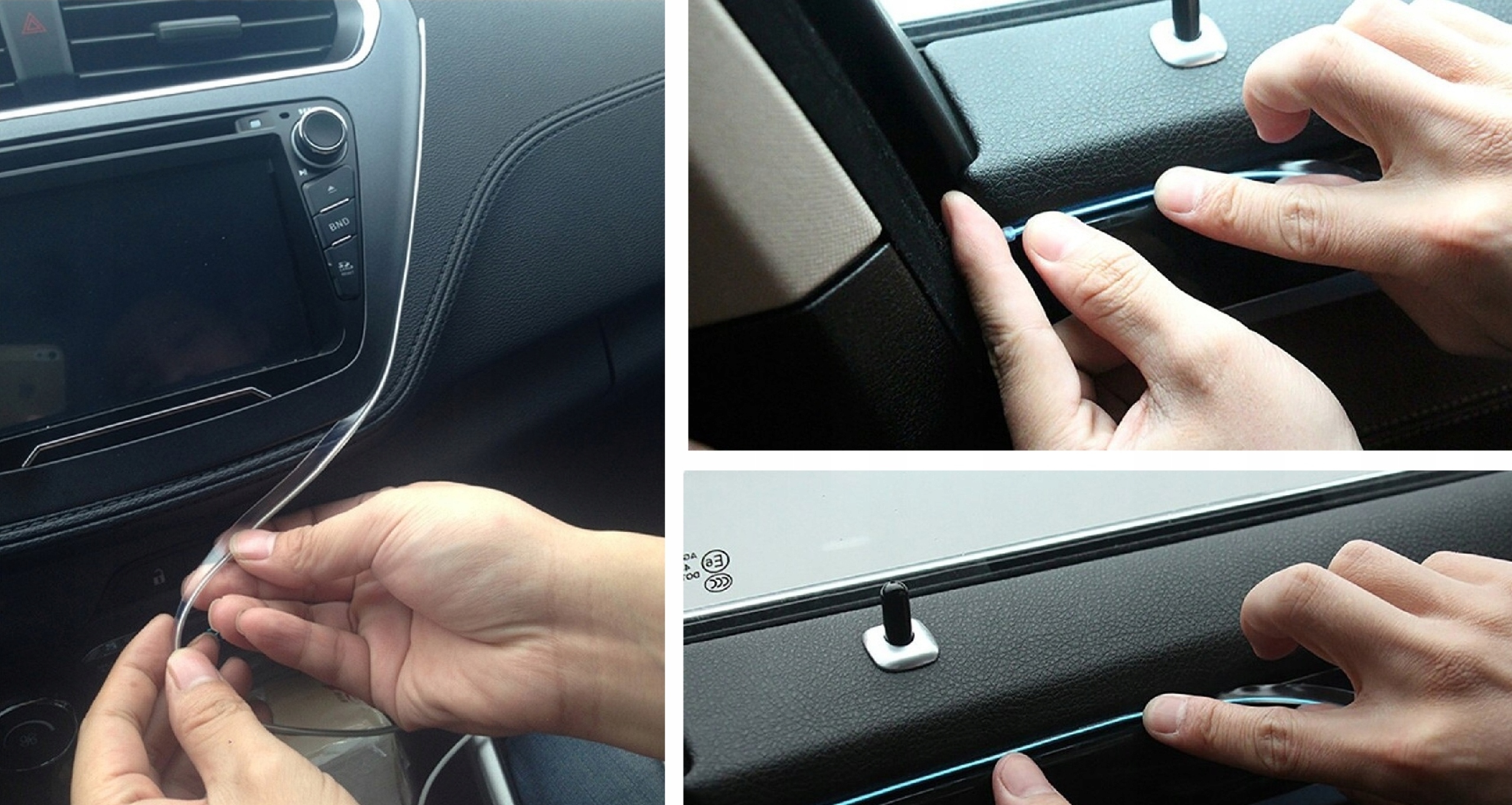 Волоконна оптика має дуже широкий спектр застосувань як освітлення салону автомобіля, приладової панелі, керма, бардачка, уздовж смуг, сидінь, ременів безпеки або оздоблення дверей (всередині та під дверима). Стрічка ідеально підходить для прикраси автомобіля, а також для кемпінгу чи бару.