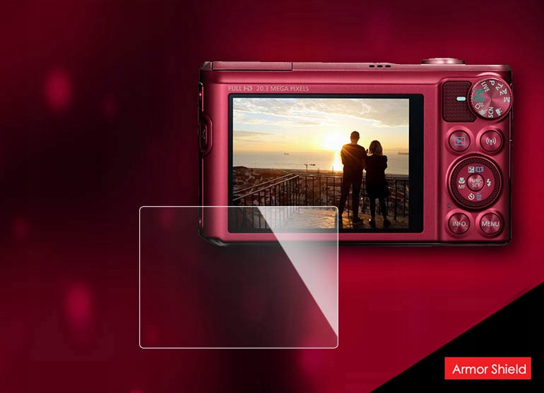 Броняний щит пропонує інноваційний метод захисту дисплея камери Canon SX720 HS.