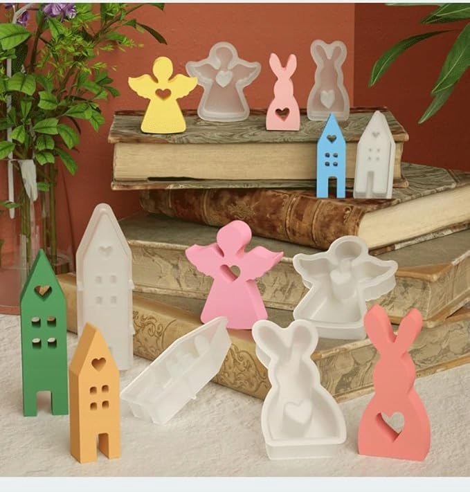 ⭐ НАБІР З 6 СИЛІКОНОВИХ ПАСХАЛЬНИХ ФОРМОВ – БУДИНОК, КРОЛИК, АНГЕЛ | СВІЧКИ • МИЛО • ЕПОКСИДНА СМОЛА • DIY • РУЧНІ ВИРОБИ ⭐