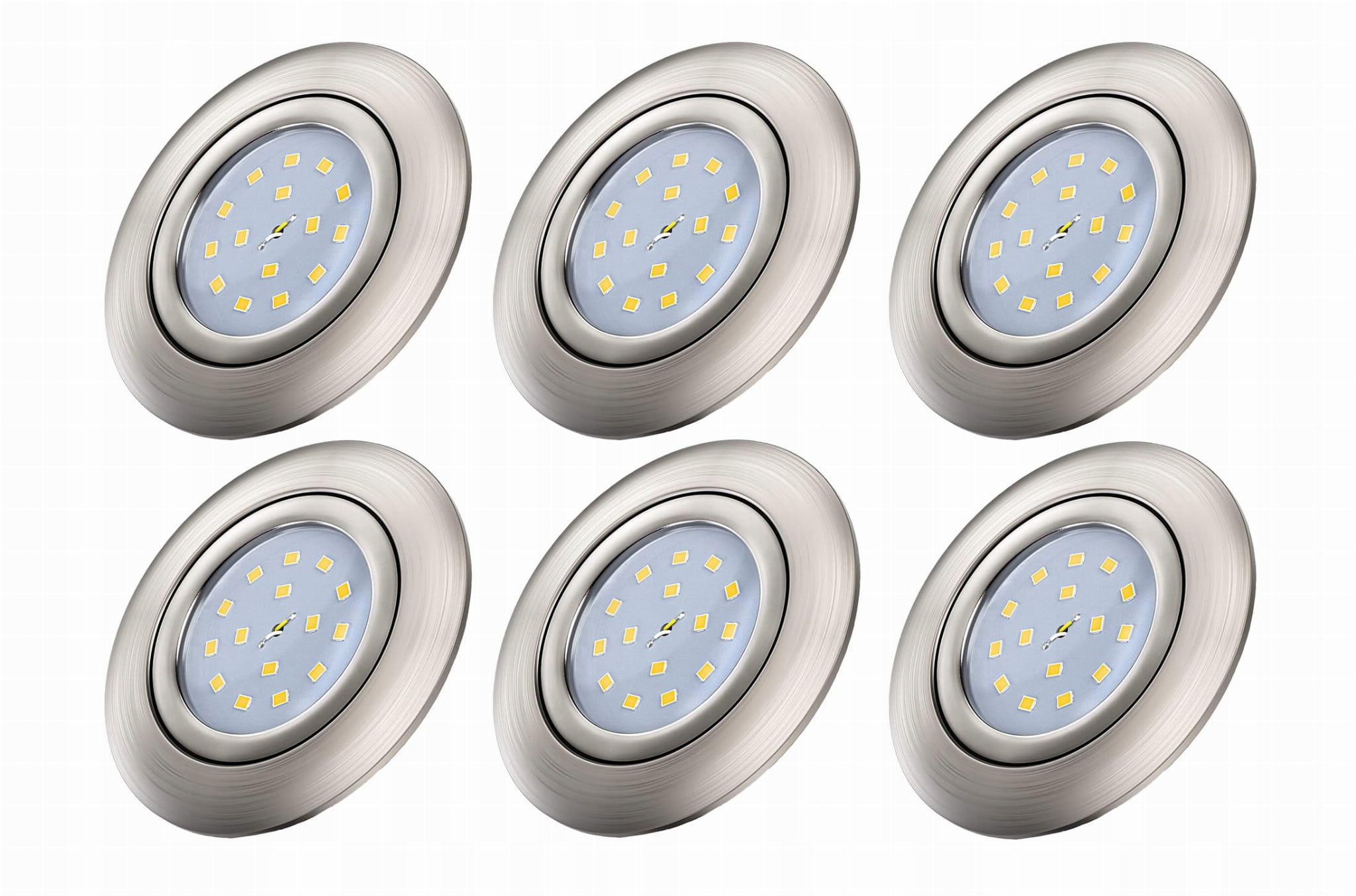 6x Recessed Socket - Downlight - у світильнику використовується високоякісний світлодіодний модуль потужністю 4,8 Вт і теплим кольором світла 3000k, завдяки чому глибина установки зменшена до 3 см. Оправа з матового нікелю. Додатковою перевагою є поворотна рама.