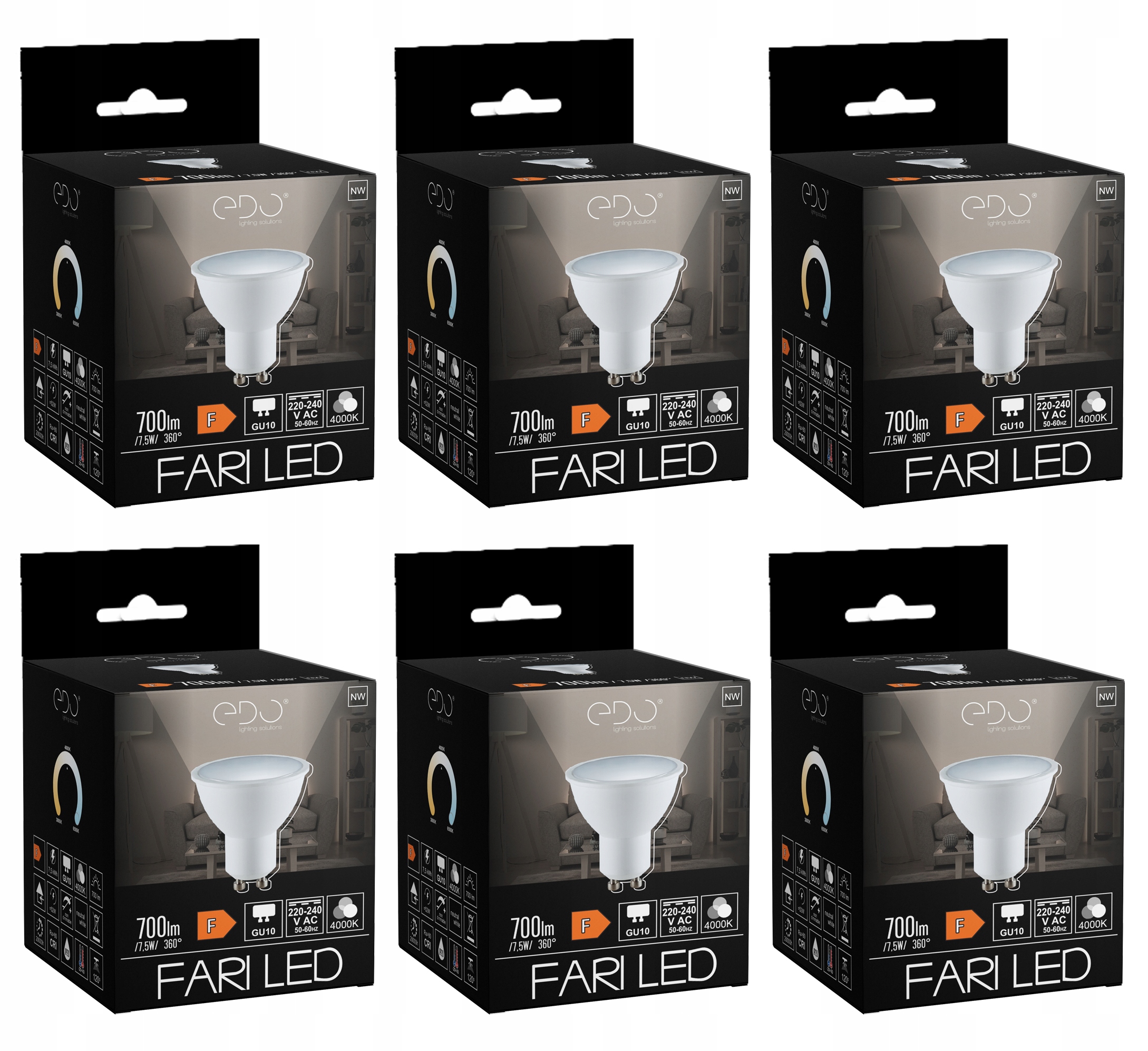 Набір з 6 шт. - FARI LED лампа 7.5W NW, GU10, 120°, 4000K нейтральний колір, 700lm, 220-240V EDO777435 EDO