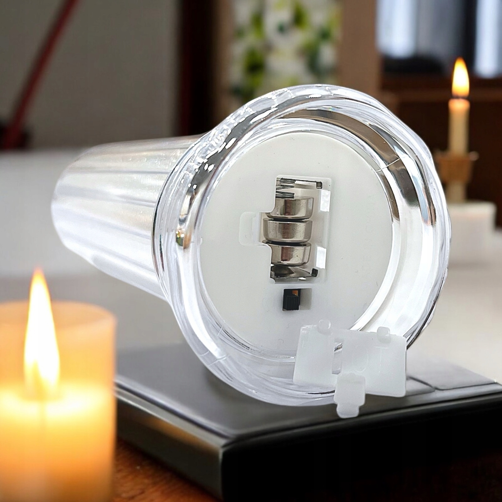 Декоративна свічка на батарейках ідеально замінить класичні парафінові свічки та свічкові вкладиші. Свічки виготовлені з пластику, тому не псуються, як класичні парафінові вставки, а якщо забрудниться, просто протріть їх ганчіркою. Світлодіодні лампи служать набагато довше, ніж звичайні свічки, тому, обираючи нашу заміну, ви ефективно зменшите кількість утворених відходів.