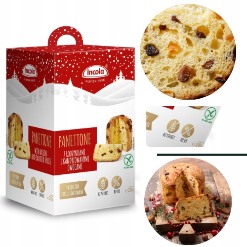 6xPANETTONE РІЗДВЯНИЙ ХЛІБ INCOLA ГЛЮТЕНУ БЕЗ ПШЕНИЦІ, СОЇ