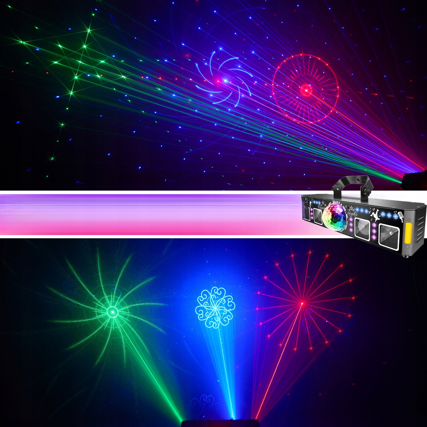 Освітлення ді-джеїв поєднує в собі сліпучий ефект сценічного освітлення та барвистої диско-кулі, пропонуючи багаті динамічні проекції. Освітлення містить червоні, сині, червоні та зелені візерунки, які дозволяють використовувати понад 100 різних колірних комбінацій і різнокольорових світлових ефектів. Освітлення також оснащено RGB- та УФ-підсвічуванням для настрою та золотим стробоскопом, щоб освітлити вашу вечірку різними кольорами. Ця комбінація багатьох ефектів створює чудову атмосферу вечірки.