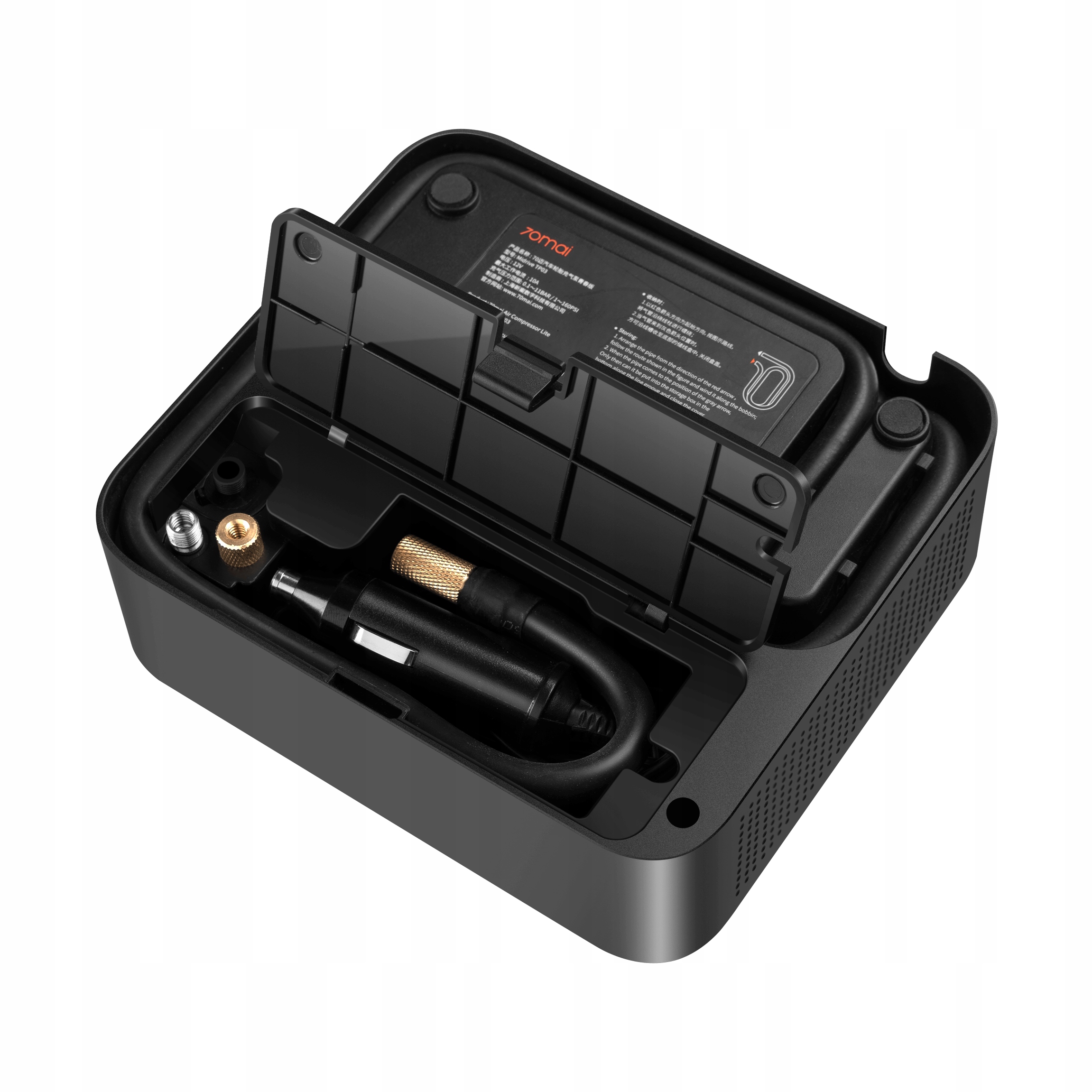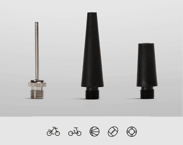 - 70mai Air Compressor Lite можна використовувати не тільки для накачування шин автомобіля, мотоцикла або велосипеда, компресор також стане незамінним помічником при накачуванні матраців, м'ячів та інших надувних елементів. У набір входять 3 універсальні підказки, які вам у цьому допоможуть.