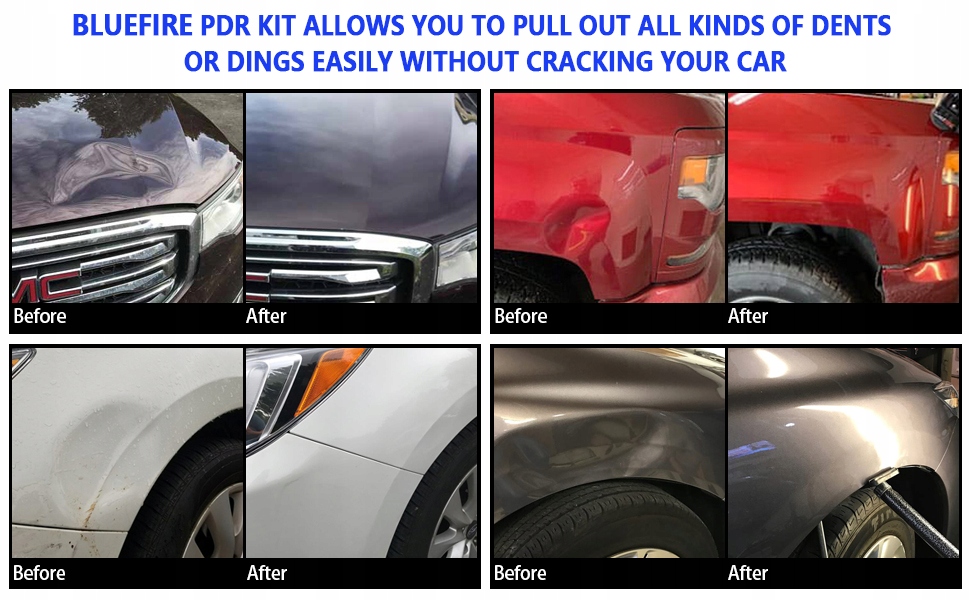 ✅ Легко у виготовленні вм'ятини: набір інструментів PDR містить усі інструменти, необхідні для відновлення вм'ятин у машині. Ми є експертами з ремонту вм'ятин автомобілів. Незалежно від того, чи є ви початківцем чи професіоналом, ви можете легко ремонтувати вм'ятини автомобілів. Дно інструменту для видалення вм'ятин та підняття вм'ятин виготовляється з гуми, тому він не пошкодить початковий лак. Після видалення вм'ятин із інструментом для видалення вм'ятин ви можете розпорошити клей із спиртом з концентрацією 90% або більше, щоб повністю видалити залишки клею без пошкодження нового вдосконалення. вм'ятини. Ми також пропонуємо ручки різної форми та розмірів, які є більш товстими і не ламаються легко. У той же час, адгезія нашої клею в палиці збільшується, що дозволяє видалити вм'ятини в твердих місцях. Він здатний видалити вм'ятини, що робить його ефективним рішенням у разі більш серйозної шкоди. Наші зняття 2-W-1 T-BAR-це універсальне рішення, яке може обробляти майже всі типи великих вм'ятин. Крім того, його можна вилучити до короткої Т -ручки, що робить її використання ще більш зручним та ефективним.