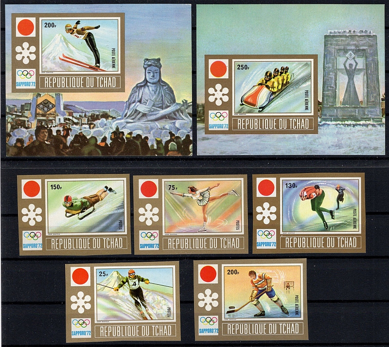 **72 Czad 502B-507B BL.36B-37B = 200 Euro NIEZĄBKOWANE - OLIMPIADA SAPPORO