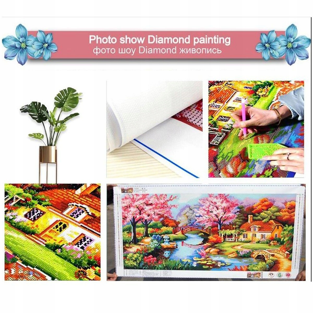 У набір входить спеціальна канва з надрукованим малюнком . Використовуючи діаманти, що входять до набору, ви повинні самостійно оформити малюнок.