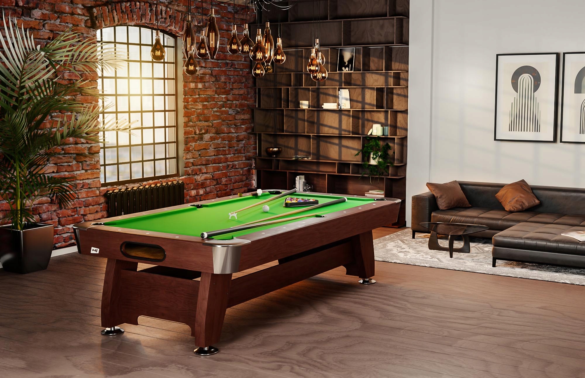 Коричневий більярдний стіл Hop-Sport 7 футів із зеленою тканиною