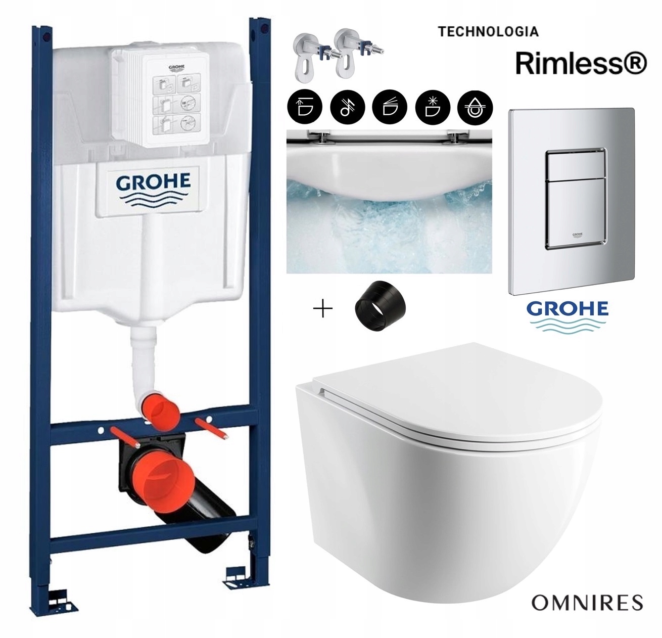 7в1 КОМПЛЕКТ ПРИХОВАНОГО МОНТАЖУ УНІТАЗУ, СТЕЛАЗ + ЧАША УНІТАЗУ Rim Silent Omnires + КНОПКА