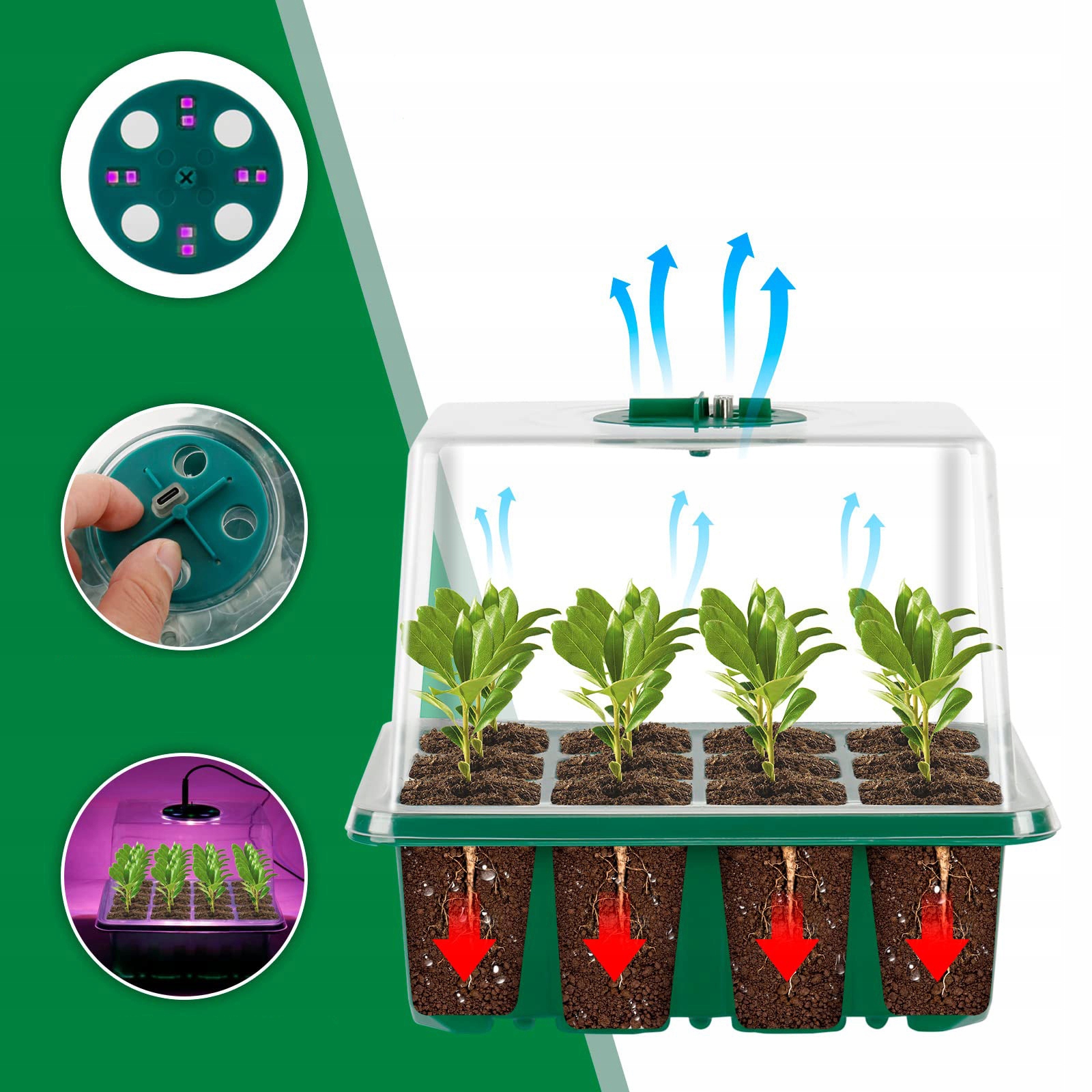 ✅ Купольний купол також є вентиляційним перемикачем та світлодіодною лампою для вирощування, що забезпечує рослинам з повним світлом спектру. Ми надаємо USB -кабель з 5 портами. Для одночасного з'єднання 5 лотків для вирощування з обкладинками. Його можна зручно використовувати вдома та офіс.