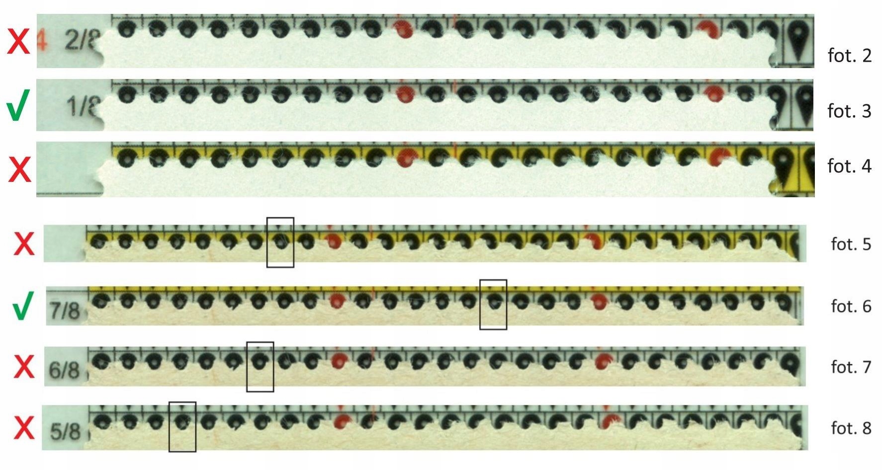 Перфометр має прозорий матеріал. Bei der bisher angewandten Methodik wurde die Anzahl der Löcher auf einer Länge von 20 mm mit einer Teilung von 1/4 gemessen.