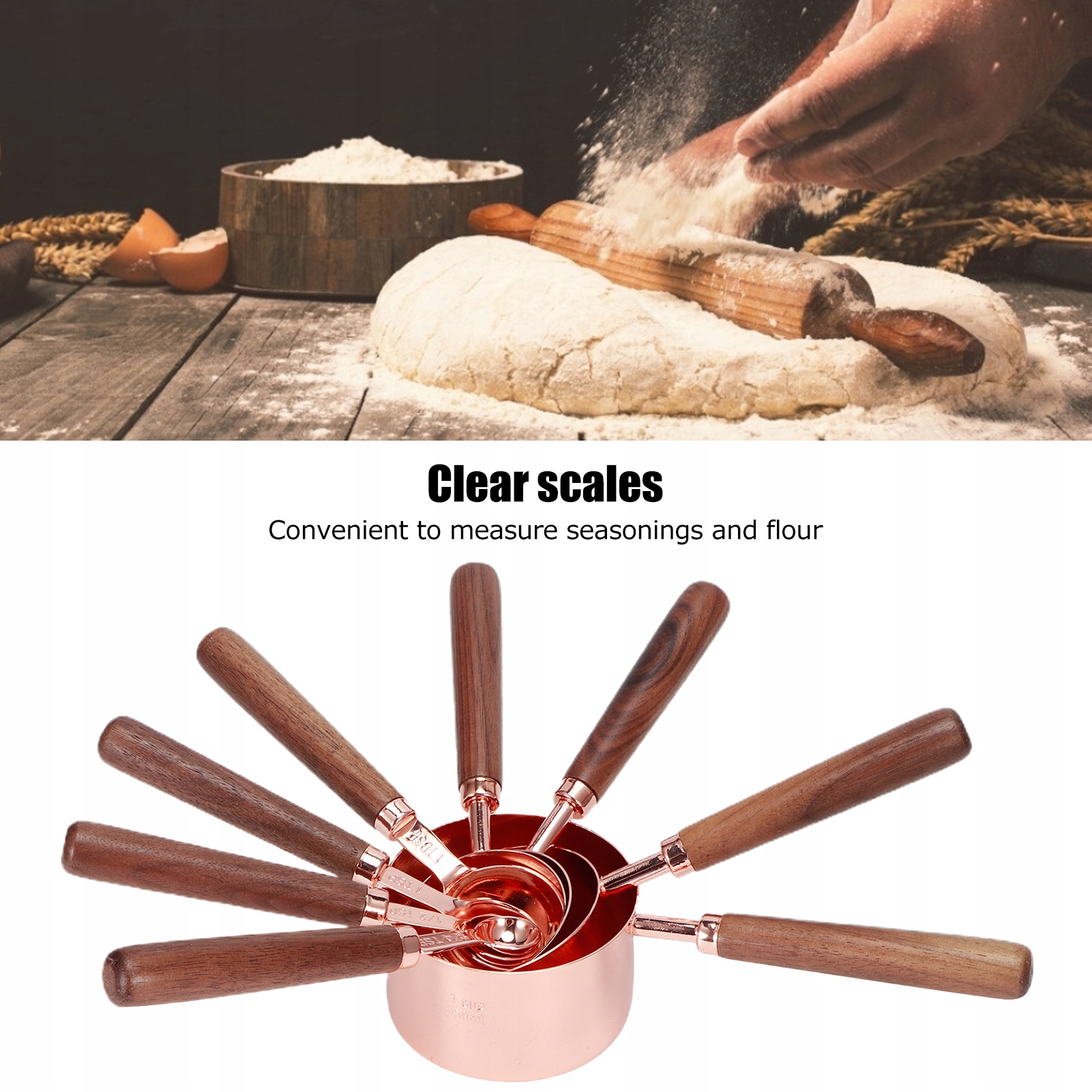 8 шт. Набір заходів, виготовлених з рожевої золотої нержавіючої сталі з дерев’яними ручками, випічки на кухні