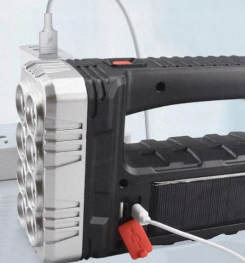 Ліхтарик має вбудовану сонячну панель, яка, окрім традиційної зарядки за допомогою зарядного пристрою, дозволяє заряджати пристрій за допомогою сонячної панелі, розміщеної збоку від ліхтарика. Завдяки цьому ми можемо заряджати наш пристрій у будь-яких умовах, навіть без доступу до електричної розетки. Ця функція ідеально підходить для подорожей на природі, кемпінгу, походів і будь-де, де немає електрики.