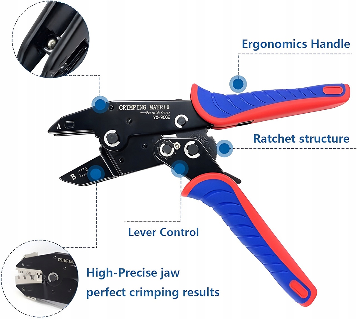 Багатофункціональний інструмент затискання: його можна використовувати для ізольованих та незацільованих контактів. Термокуризивні, кабельні рукави та сонячні затискачі.