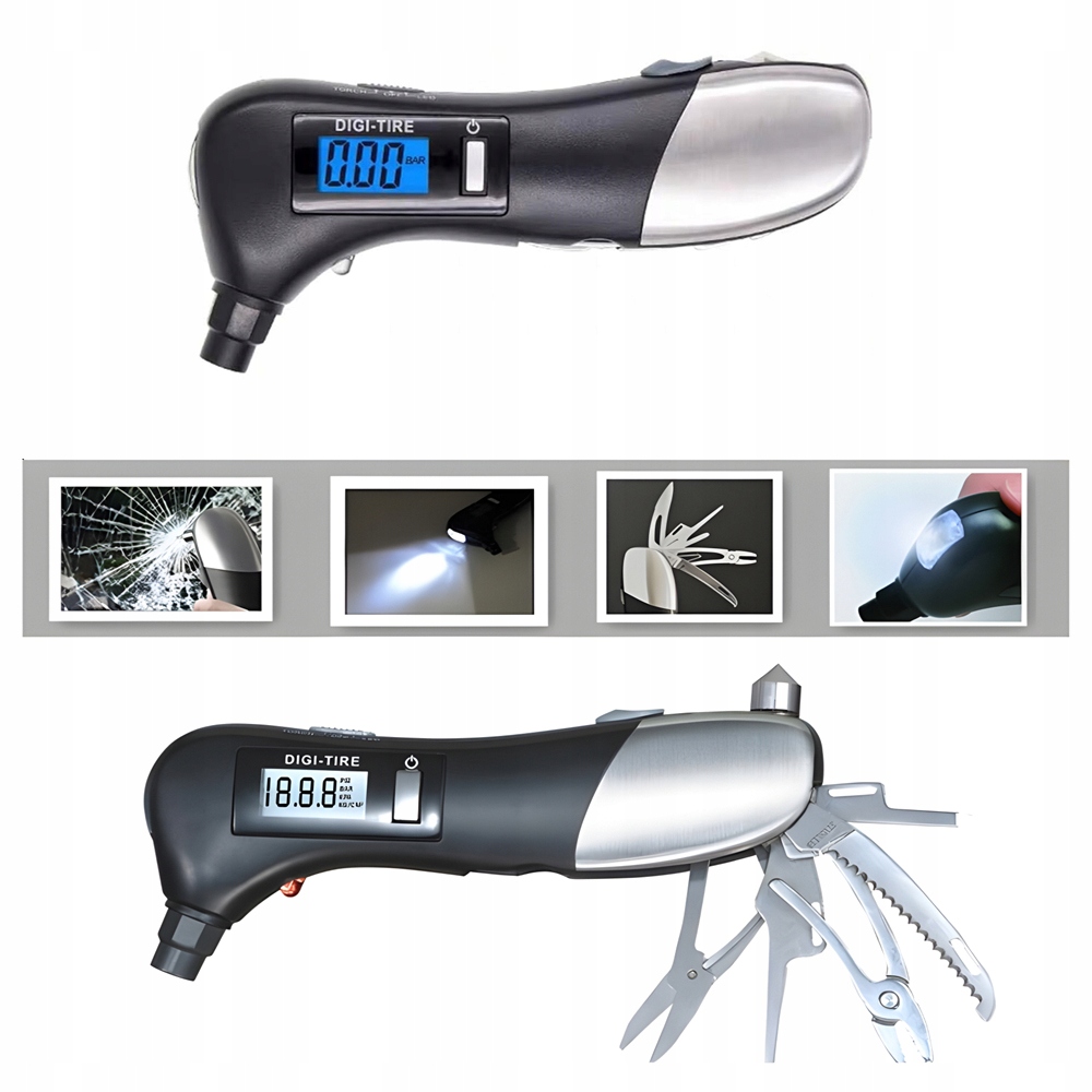 Цей компактний та універсальний пристрій поєднує надійний вимірювач тиску з практичними інструментами для порятунку. Він забезпечує безпеку, комфорт та заощадження, є незамінним елементом будь -якого набору автомобілів. Він буде вмістити в кожному відділенні зберігання і готовий діяти в будь -якій ситуації.