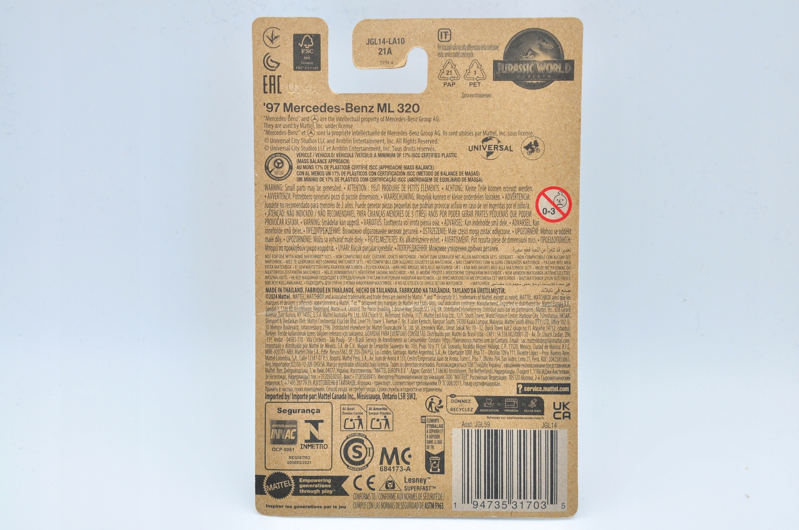 Модель '97 Mercedes-Benz ML 320 стилізований як справжній транспортний засіб, що робить його привабливим для шанувальників як моториалізації, так і фільмів. Він належить до Світової серії Юрського періоду, яка дає йому характерну атмосферу пригод та дій. Стилістичні елементи, такі як камуфляж, відносяться до теми фільму, що робить її унікальною копією у кожній колекції.