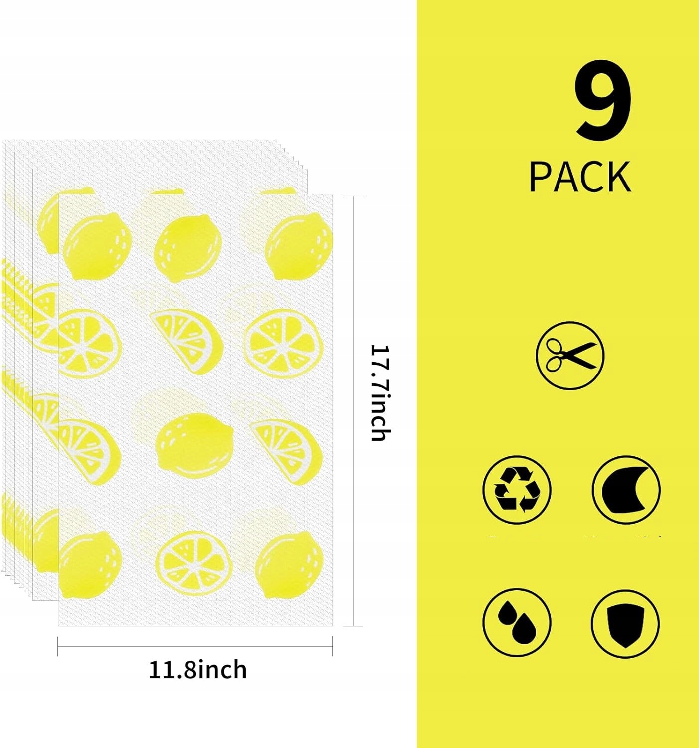 Кожен набір містить 9 килимків розміром 17,7 x 11,8 дюймів (45 см x 30 см) із двома різними візерунками: ромашки та лимон. Ви можете вибрати свій улюблений візерунок, щоб прикрасити свій холодильник, кухню чи інше місце.