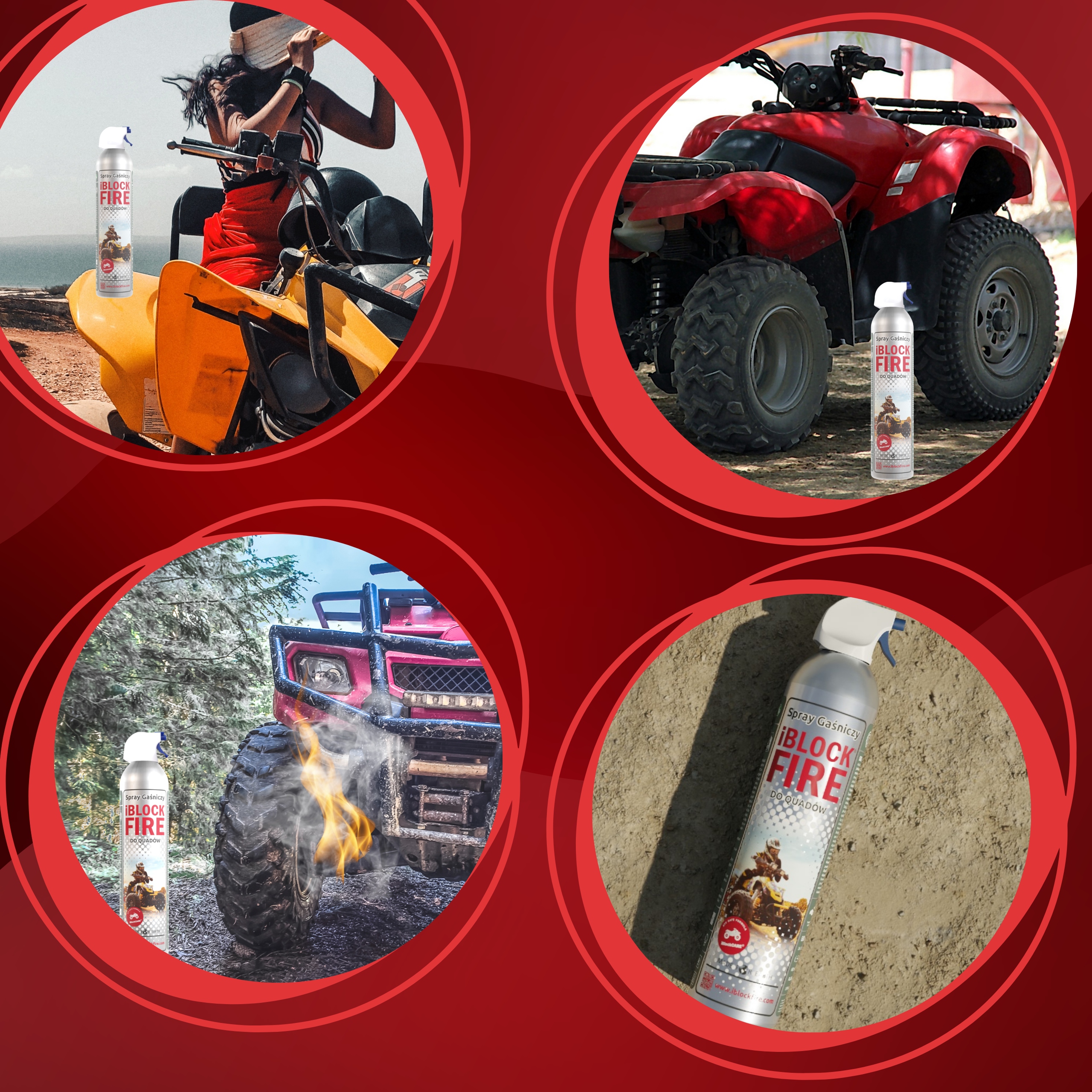 iblockfire - це перший у світі, 100% біологічно розкладається спрей для пожеж , що, завдяки унікальним властивостям і невеликим розміром, може використовуватися як Quad . Це надзвичайно важливо, оскільки традиційні вогнегасники занадто великі і занадто важкі, щоб мати їх один з одним під час руху у випадку вогню. Завдяки спрею, пожежа спричинила, наприклад, витік масла може бути нейтралізований лише за кілька секунд. Інноваційна формула iblockare робить iblockfire безпечним для шкіри людини. Ви можете використовувати його багато разів (поки пляшка не буде повністю спорожнена), а її проста робота означає, що навіть у найбільш напруженій ситуації не буде проблем із її використанням.