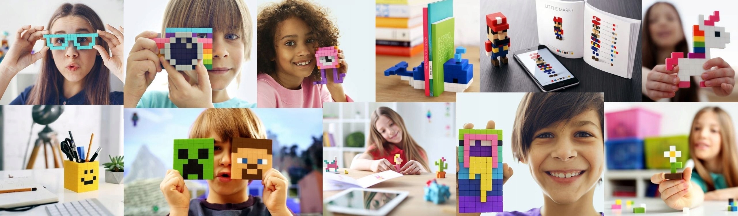 для всіх Набір pixio буде супроводжуватися інструкціями, що показують простоту процесу будівлі. Насправді дитина старше шести років може легко використовувати продукт для вивчення листів, цифр та кольорів. "Важливою особливістю Pixio є те, що вона дозволяє дуже швидко створити щось круте. Наприклад, дитина може створити динозавра всього за 10 секунд"- пояснює художнього керівника Алекса Уайта . Тому Піксіо допоможе дітям розвивати, серед інших, моторики, уважність.