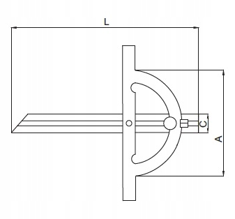кут із розсувною рукою з діапазоном 10-170 ° та 1 ° шкалою. Він виготовлений з нержавіючої сталі, поверхня читання (масштаб) - хромована.