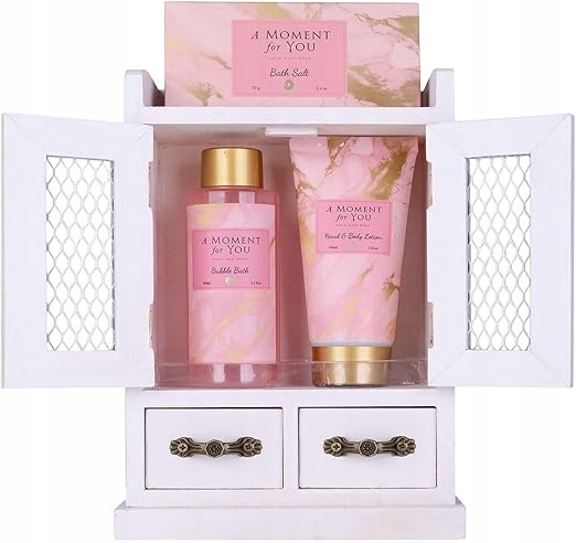 Набір включає пінну ванну, лосьйон для тіла та солі для ванн, які огортатимуть шкіру заспокійливим ароматом та зволожуватимуть. Ідеально підходить як оздоровчий подарунок, який допоможе вам розслабитися після важкого дня та подбати про своє тіло та почуття. Ідеальна ідея для подарунка коханій людині або моментів задоволення тільки для себе.