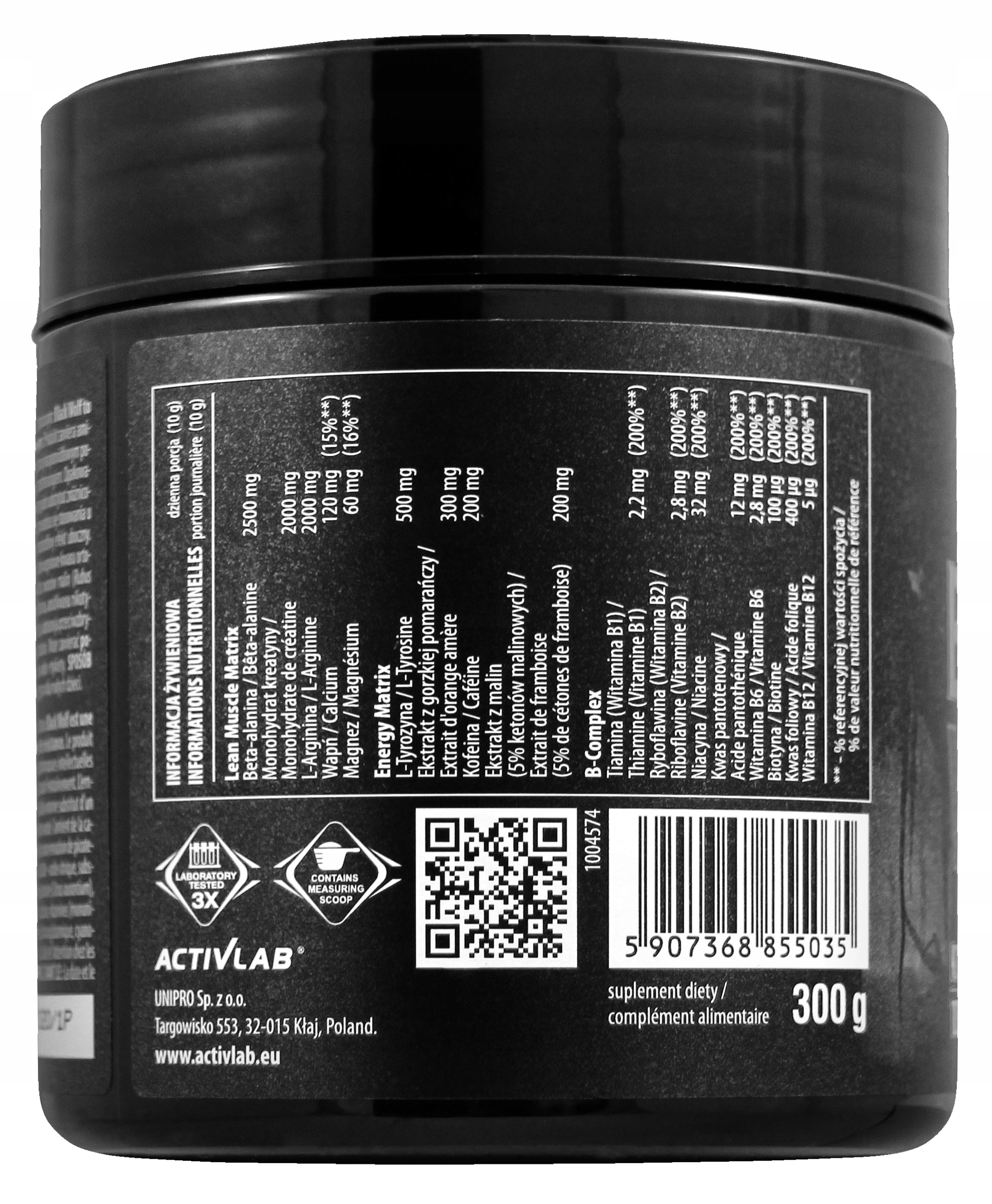 Якщо ви дуже фізично активні, хочете покращити свої результати та зменшити відчуття фізичної та розумової втоми, добавка перед тренуванням від Activlab стане ідеальним рішенням. Він ідеально підходить для людей, які хочуть спалити жирову тканину та наростити м’язову масу. Завдяки великій кількості використаних активних інгредієнтів він ідеально підходить для всіх.
