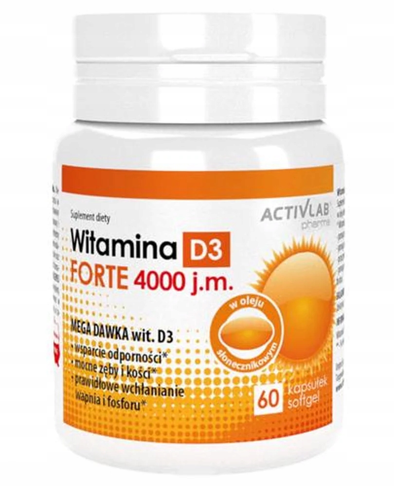 Activlab Pharma Vitamin D3 Forte 4000 МО – це дієтична добавка, яка забезпечує високу дозу вітаміну D3. Інгредієнти добавки підтримують належне функціонування імунної системи та допомагають підтримувати належний рівень кальцію та фосфору в організмі. Добавка призначена для використання як дієтична добавка в періоди малого перебування на сонці або у разі підвищеної потреби у вітаміні D3.
