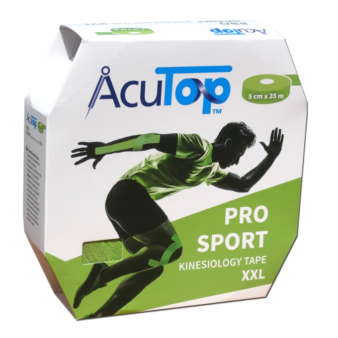 prosport acutop мають унікальний хвилястий спосіб застосування клею, який став стандартом у галузі терапевтичного стрічки . Вони забезпечують неінвазивний та ефективний метод переосмислення нервово-м’язової системи, при цьому поліпшуючи крові та лімфатичний кровообіг, заспокоюючи біль та забезпечуючи зручність та стабільність, необхідні для терапії пацієнтів. Ширина 5 см дозволяє вирізати більшість додатків. Він може бути легко використана для всіх чотирьох найпопулярніших методів кінезіопінгу ("і" і "," y "," x "," f "). Ця стрічка ідеально підходить для використання у всьому тілі , а довжина 35 м дозволяє виконувати багато додатків.