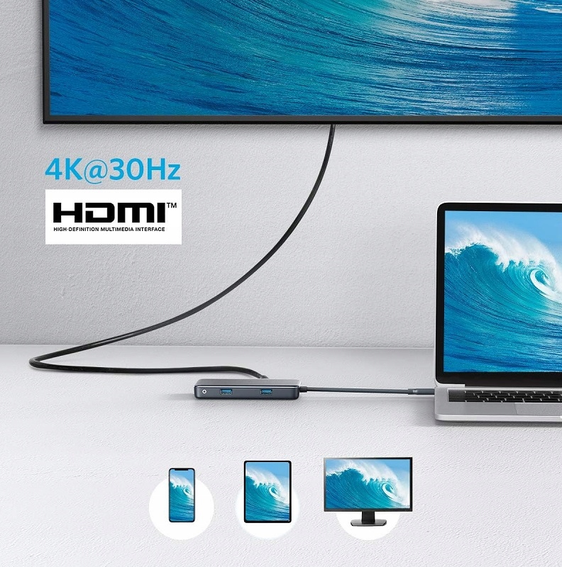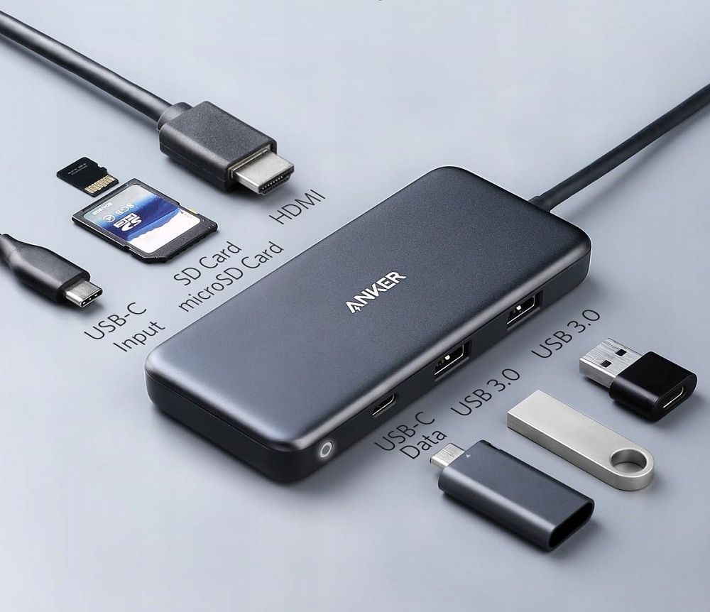 адаптер Anker 7W1 -це незамінний інструмент для всіх, хто повинен розширити можливість їх ноутбука, стільниці або смартфона з портом USB-C. Пристрій пропонує сім різних роз'ємів, включаючи порти HDMI 4K, два порти USB-A 3.0, доставку живлення USB-C, зчитувачі карт SD та MicroSD та додатковий порт USB-C . Завдяки цьому ви можете одночасно підключити багато пристроїв, надсилати дані та завантажувати обладнання - все з одного порту.