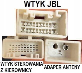 Приклад заводської магнітоли. Є головний роз'єм JBL, а також роз'єм управління на кермі і радіо. Забороняється використовувати розетки та вилки, вони не потрібні для правильної роботи запасного радіо.