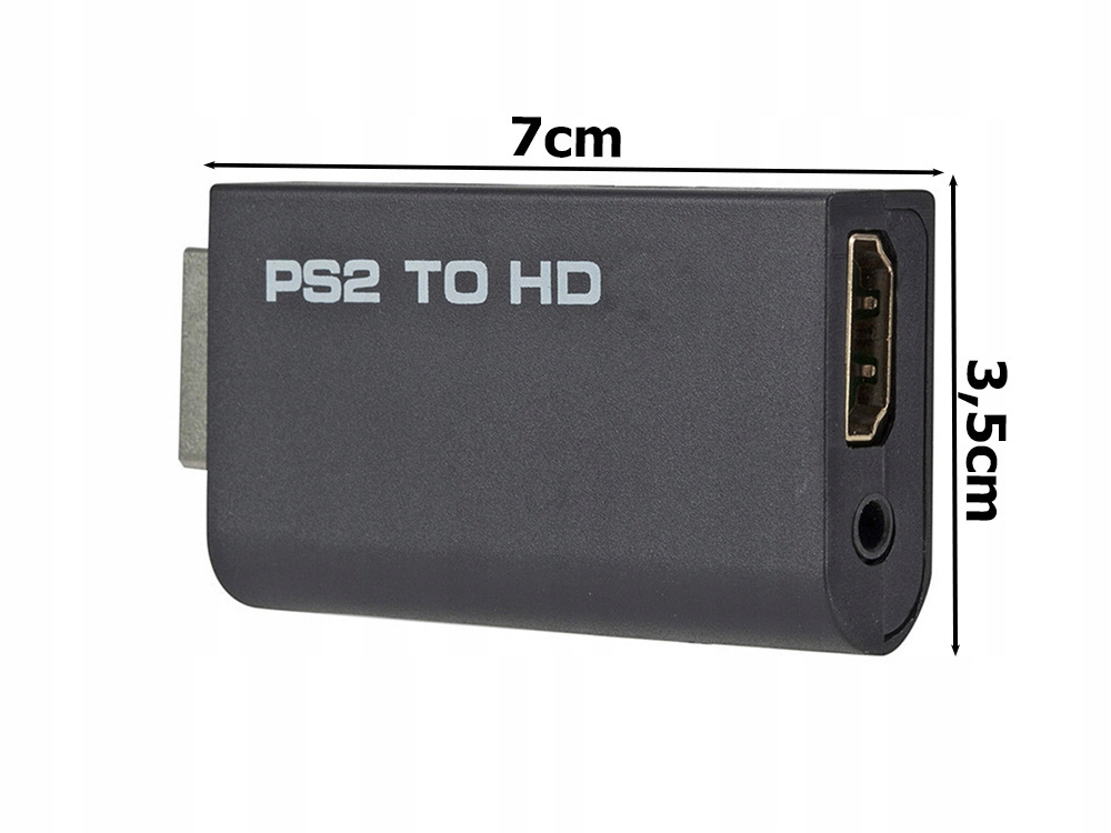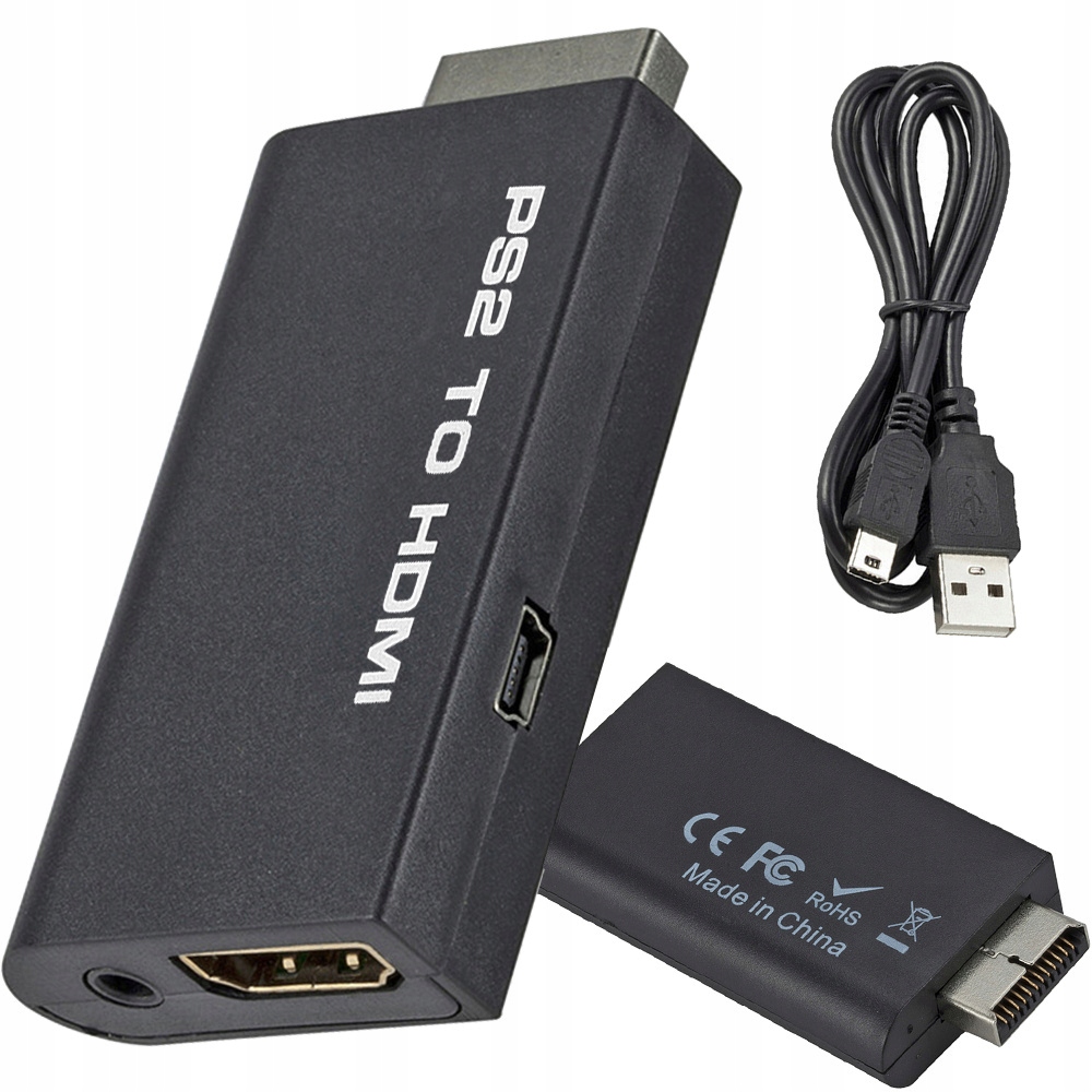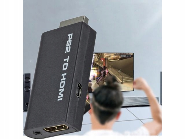 адаптер PS2 до HDMI. Адаптер дозволяє підключити консоль Sony PlayStation 2 до телевізора (приймача) за допомогою порту HDMI. Пристрій інтерполює відеосигнал з консолі PS2 для роздільної здатності Full HD (1080p). Додаткова 3,5 мм міні-джек-розетка дозволяє підключити додаткові динаміки або звукову панель. Це дозволяє PS2 грати на сучасних телевізорах. Адаптер не потребує драйверів (підключення та відтворення). Операція необхідна для постійного джерела живлення USB 5В (використовуючи доданий міні-USB-кабель).