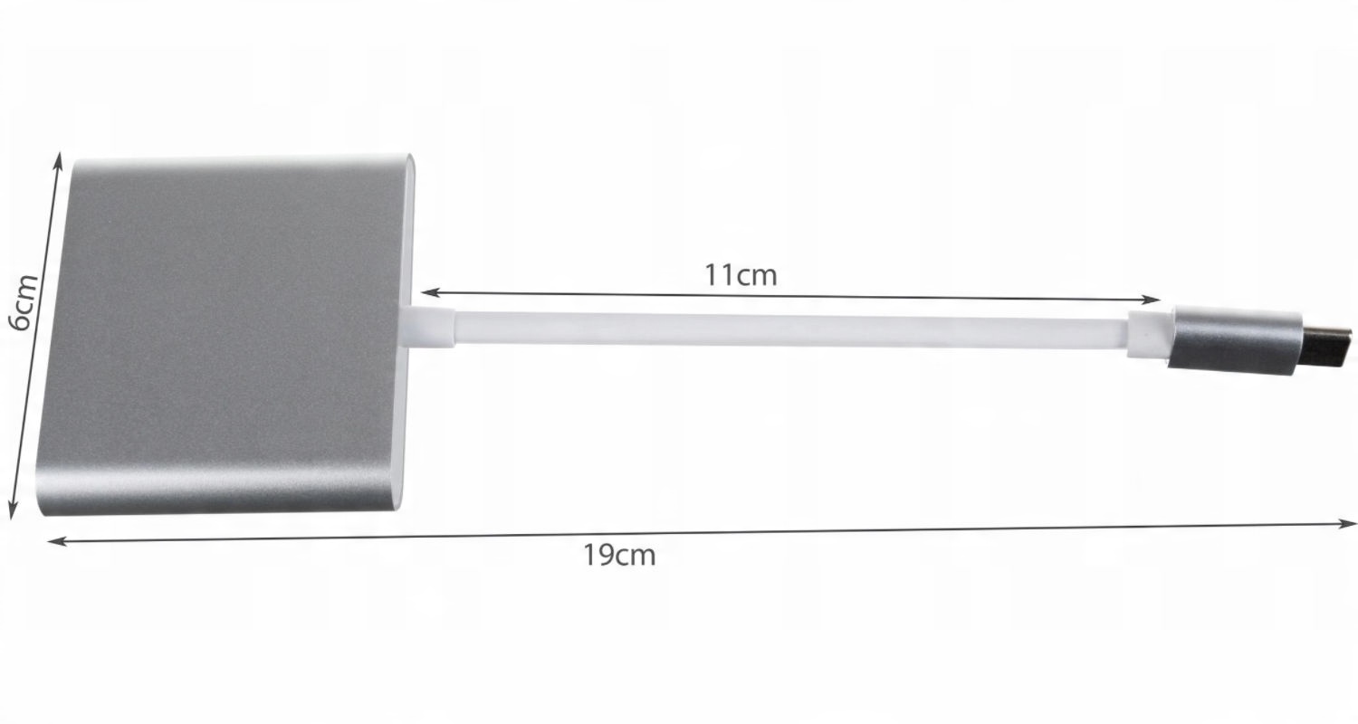 Цей адаптер 3-в-1 розширює порт USB-C на 3 порти: HDMI, USB-A та USB-C. Адаптер дозволяє підключати пристрої з входом HDMI (монітор, проектор або телевізор) до комп'ютера, ноутбука або смартфона. Водночас ви можете підключити обладнання з виходом USB-C і USB Type A (класичний).