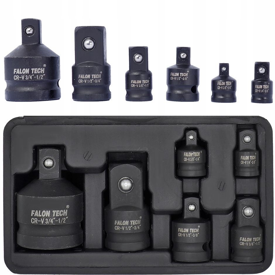 Набір ударних редукцій зі сталі Cr-V фірми Falon-Tech. Розетки оснащені замикаючою кулькою.