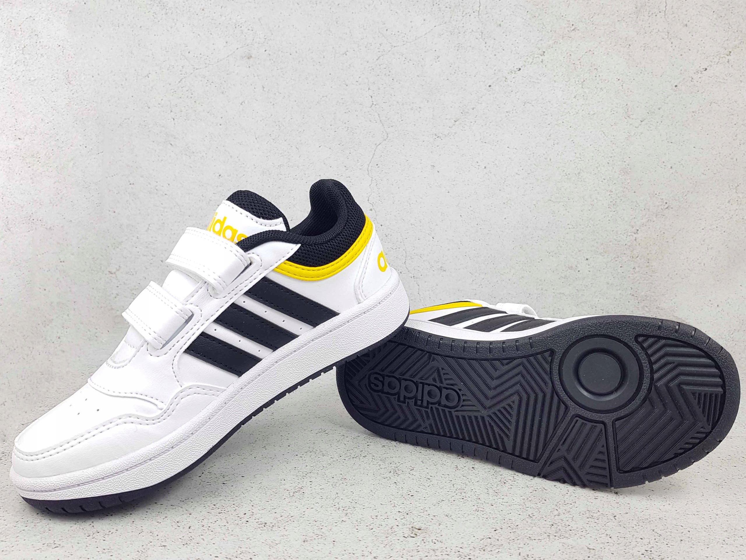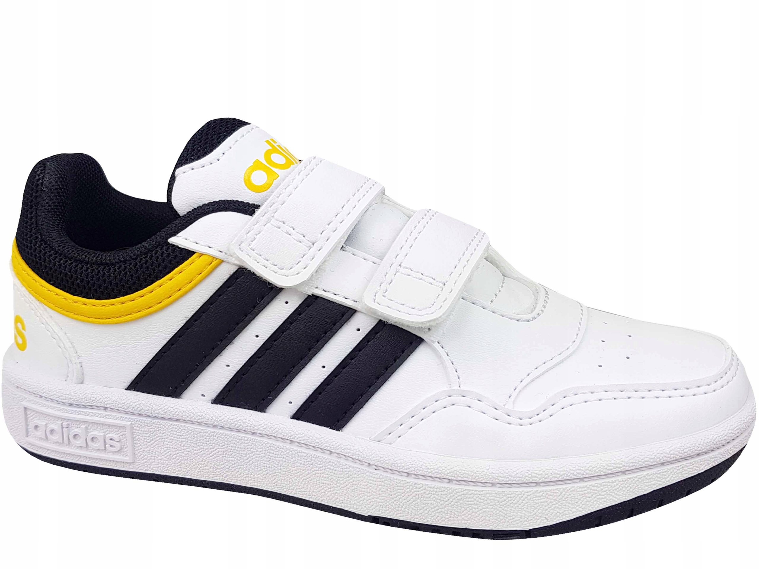 Класичне дитяче спортивне взуття з колекції Adidas Hoops . Зареєстрований липучком, щоб допомогти вам надіти та зняти взуття.