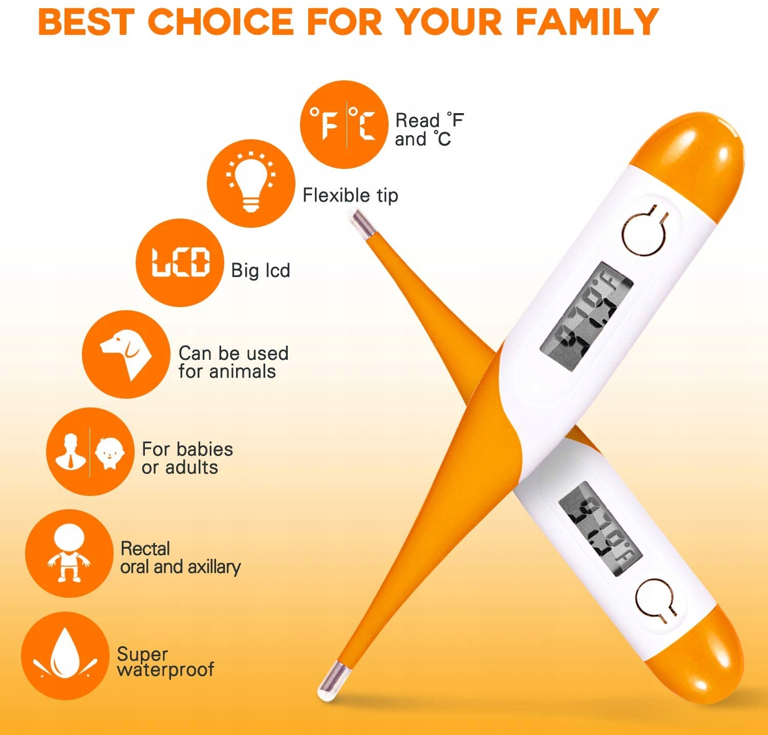 - Цифровий термометр - Цифровий термометр зберігає останнє читання для відстеження змін температури. Він підходить для всіх вікових груп, немовлят, дітей, дорослих та домашніх тварин для вимірювання температури під руками або ротом.