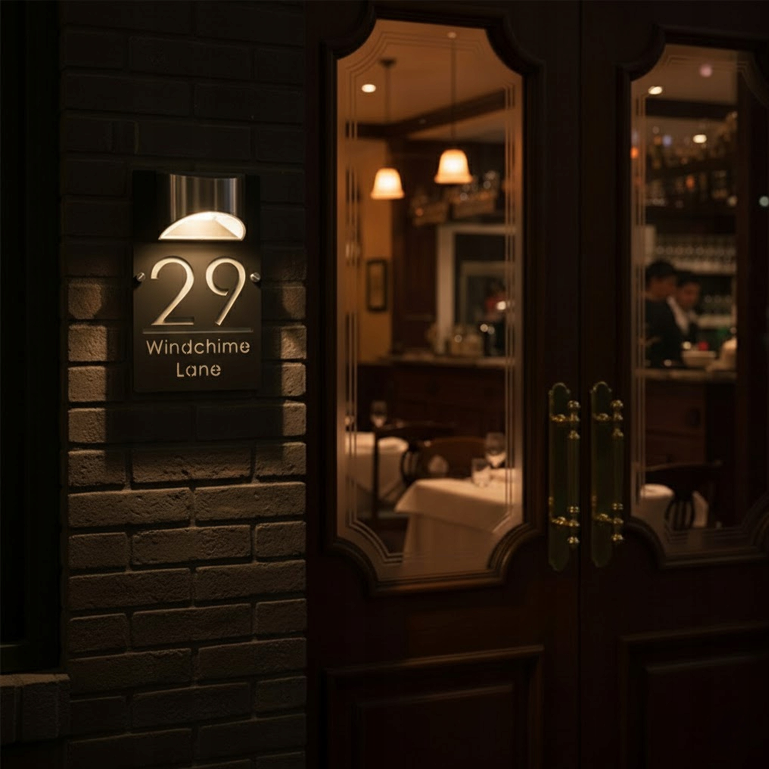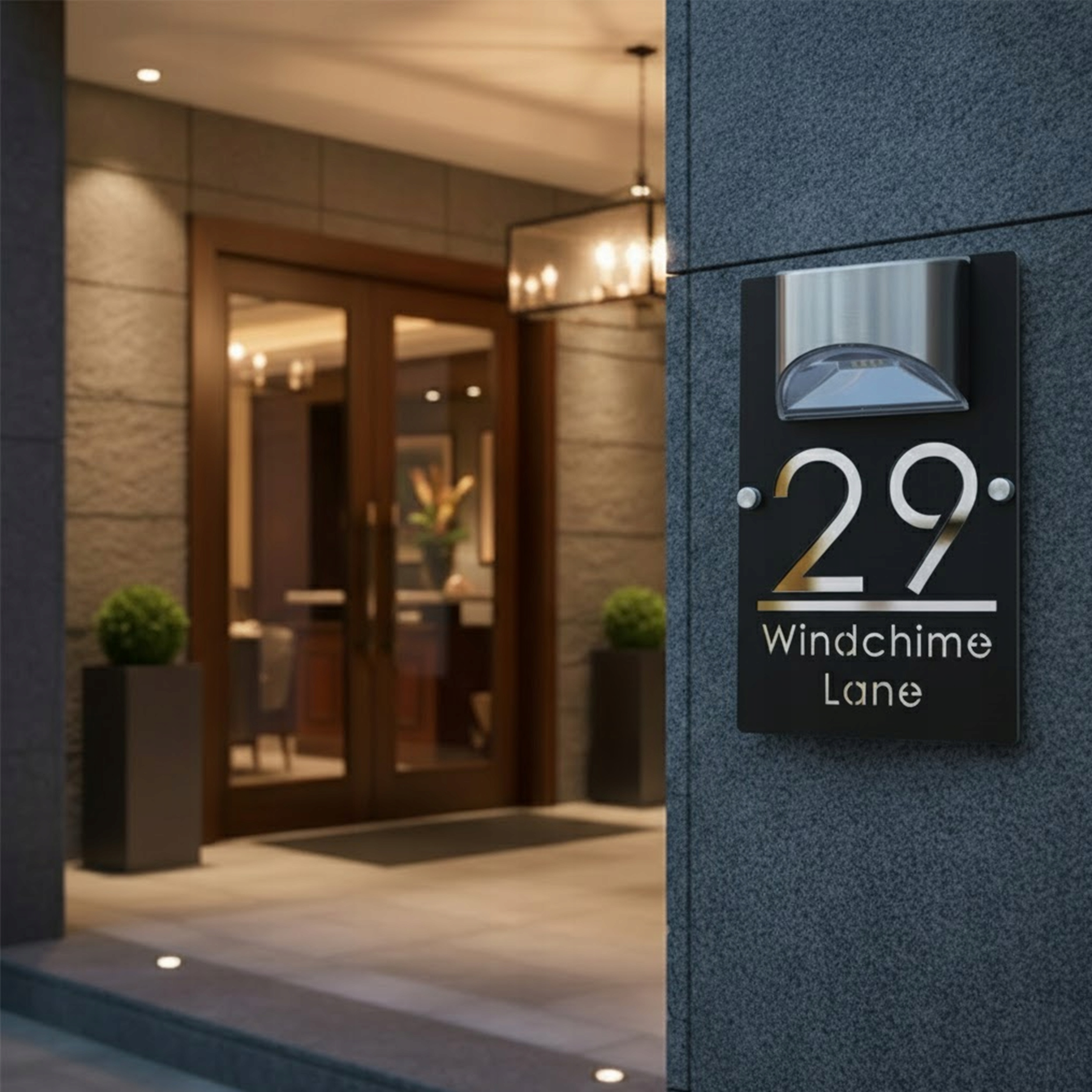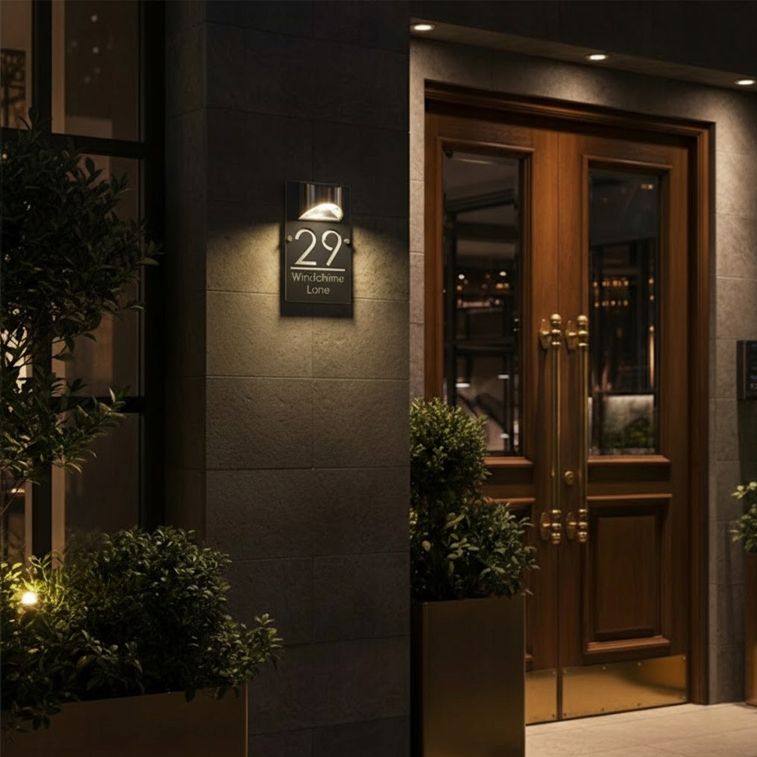 Підкресліть характер свого дому за допомогою стильної адресної таблички з сонячним підсвічуванням, яка поєднує сучасний дизайн із практичним використанням.