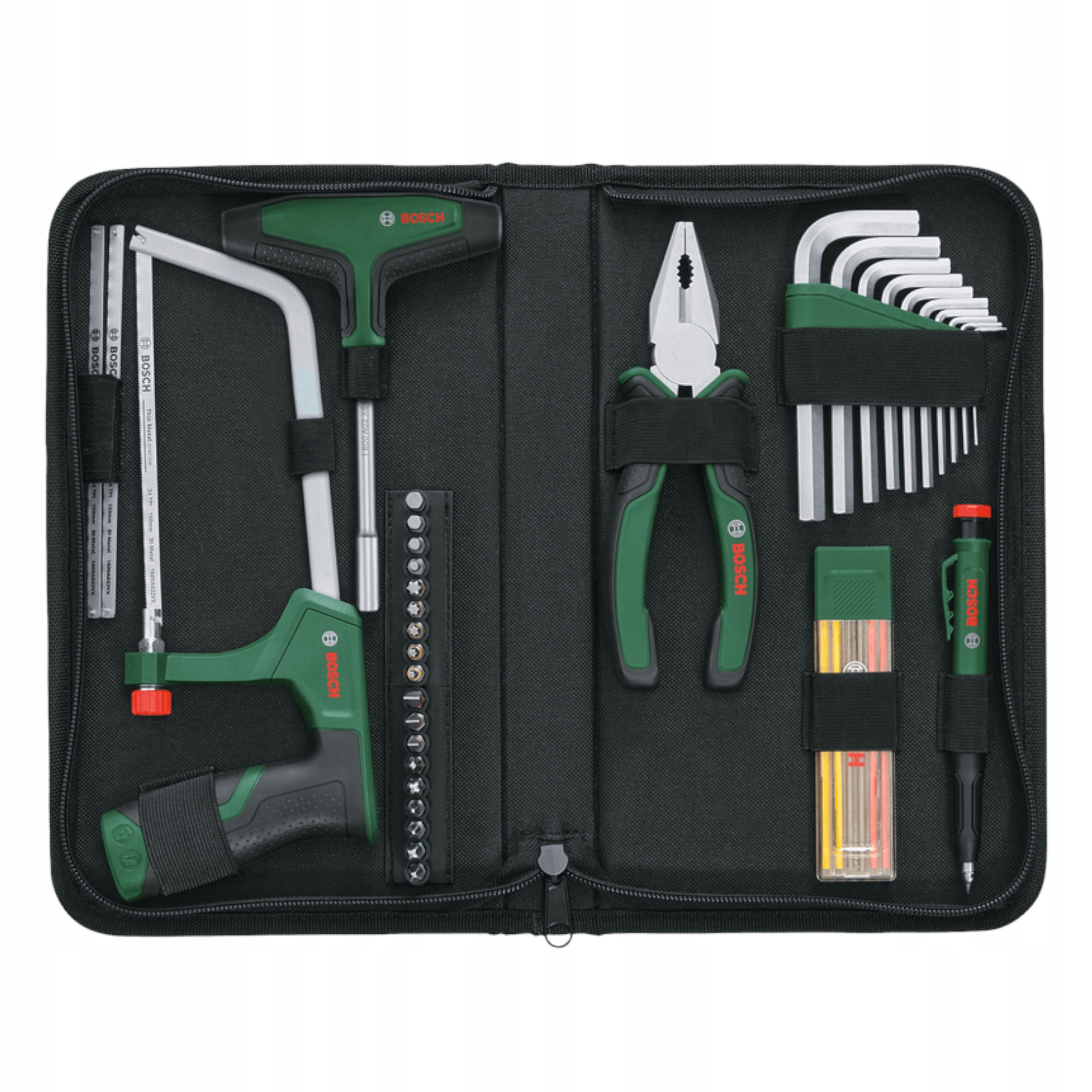 Міцна сумка для інструментів BOSCH є ідеальним рішенням для зберігання та організації вашої зростаючої колекції інструментів. Виготовлений з міцних матеріалів, він стійкий до пошкоджень і повсякденного використання. Практичне та надійне рішення для тих, хто цінує порядок і швидкий доступ до своїх інструментів.