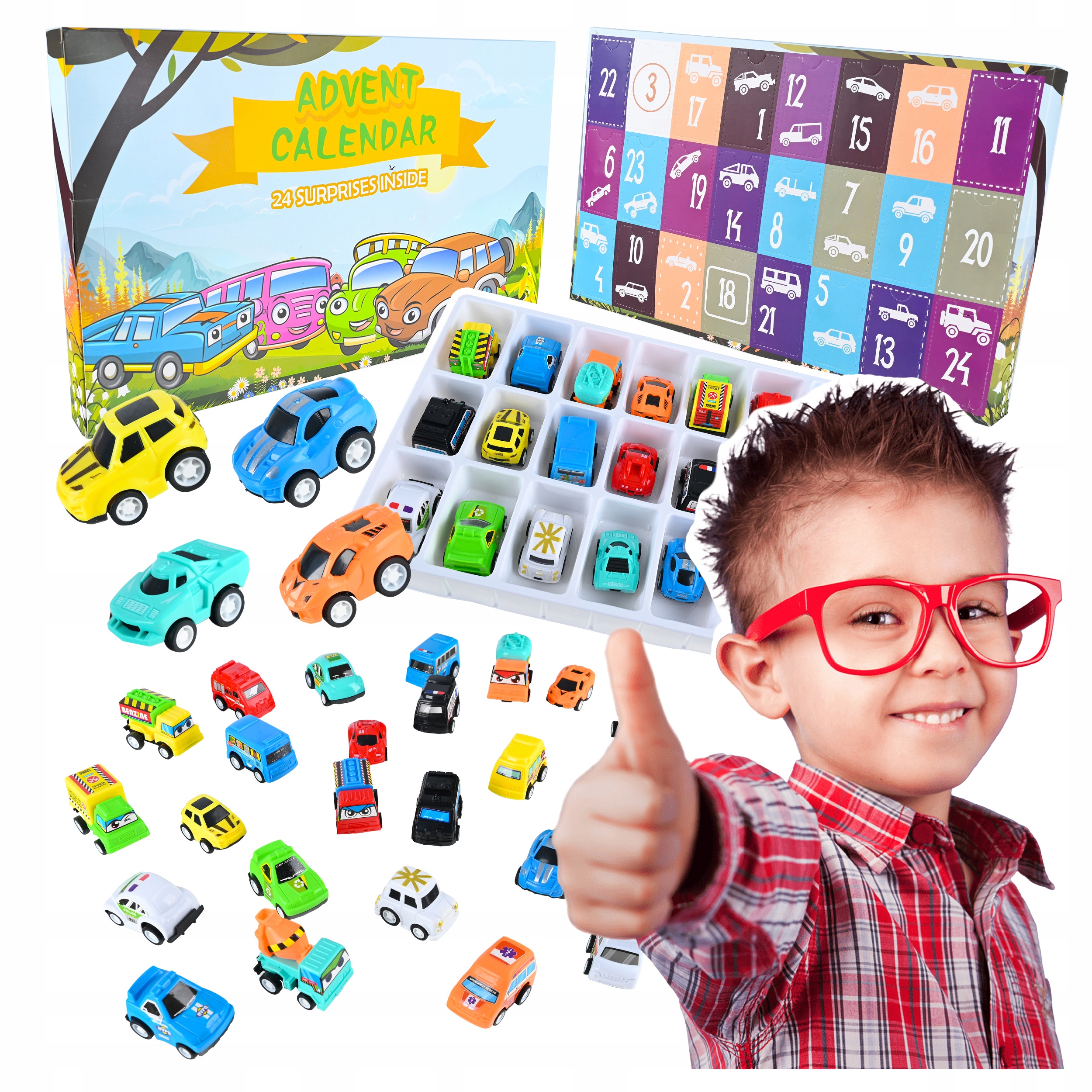 - Адвент-календар із 24 різнокольоровими автомобілями