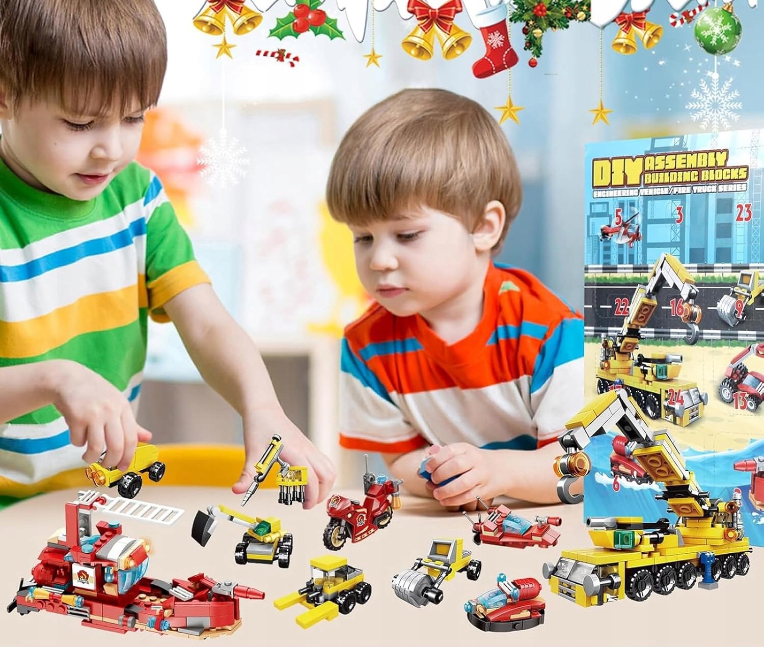 АДВЕНТНИЙ КАЛЕНДАР БЛОКИ ПОЖЕЖНИХ АВТОМОБІЛІВ САНТА ПОДАРУНОК ДІТЯМ