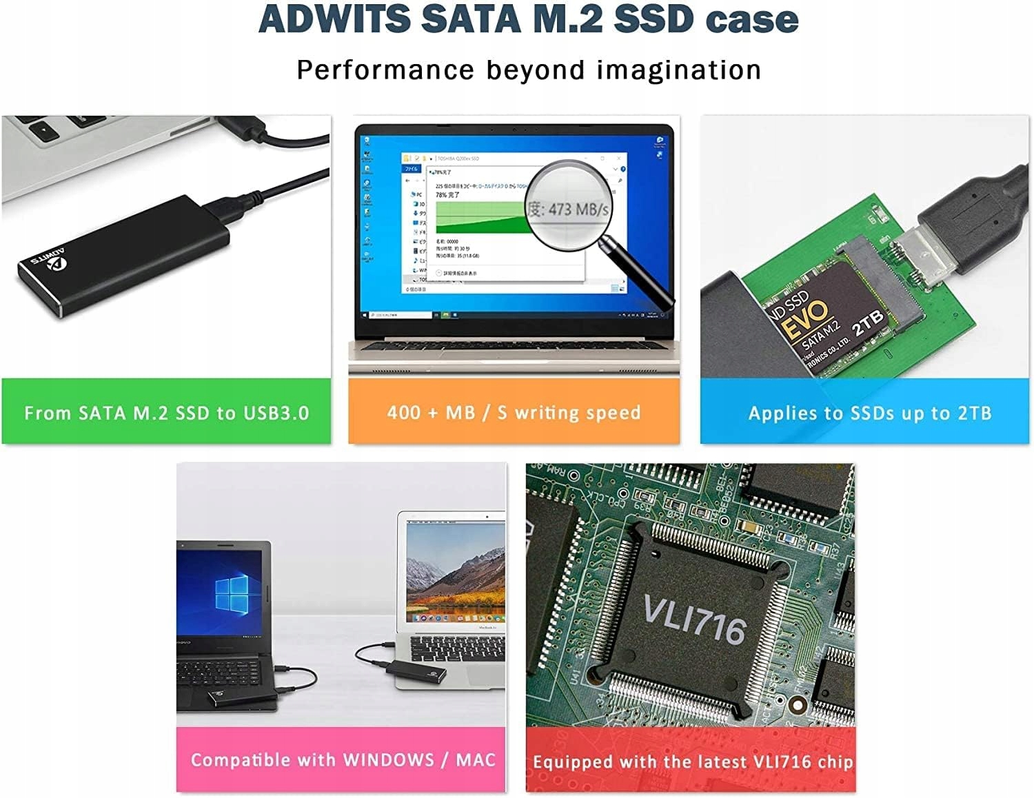 ADWITS USB 3.0 UASP до SATA NGFF M. Зовнішній корпус для Samsung 850 EVO,