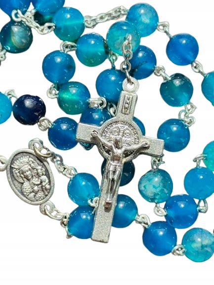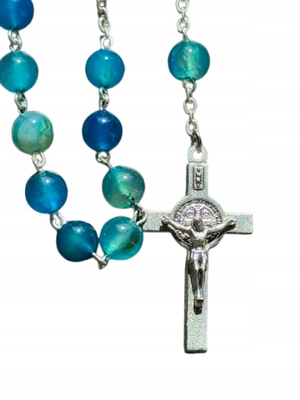 Прекрасний розарій, виготовлений з натурального каменю - агат -синій із хрестом святого Бенедикта. 4 4