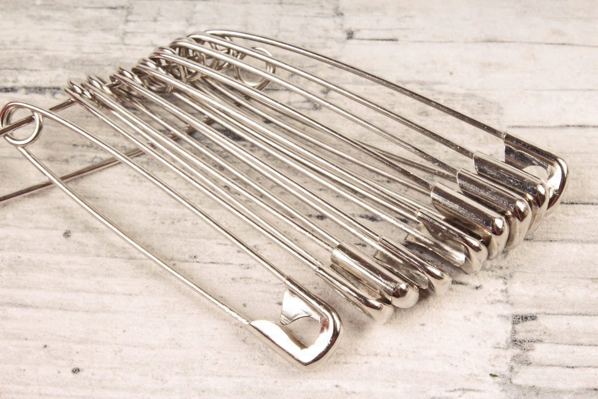 Набір безпечних шпильок чотирьох розмірів, виготовлених з металу, який забезпечує їх з винятковою міцністю, що дозволяє маніпулювати формою безпечної шпильки.