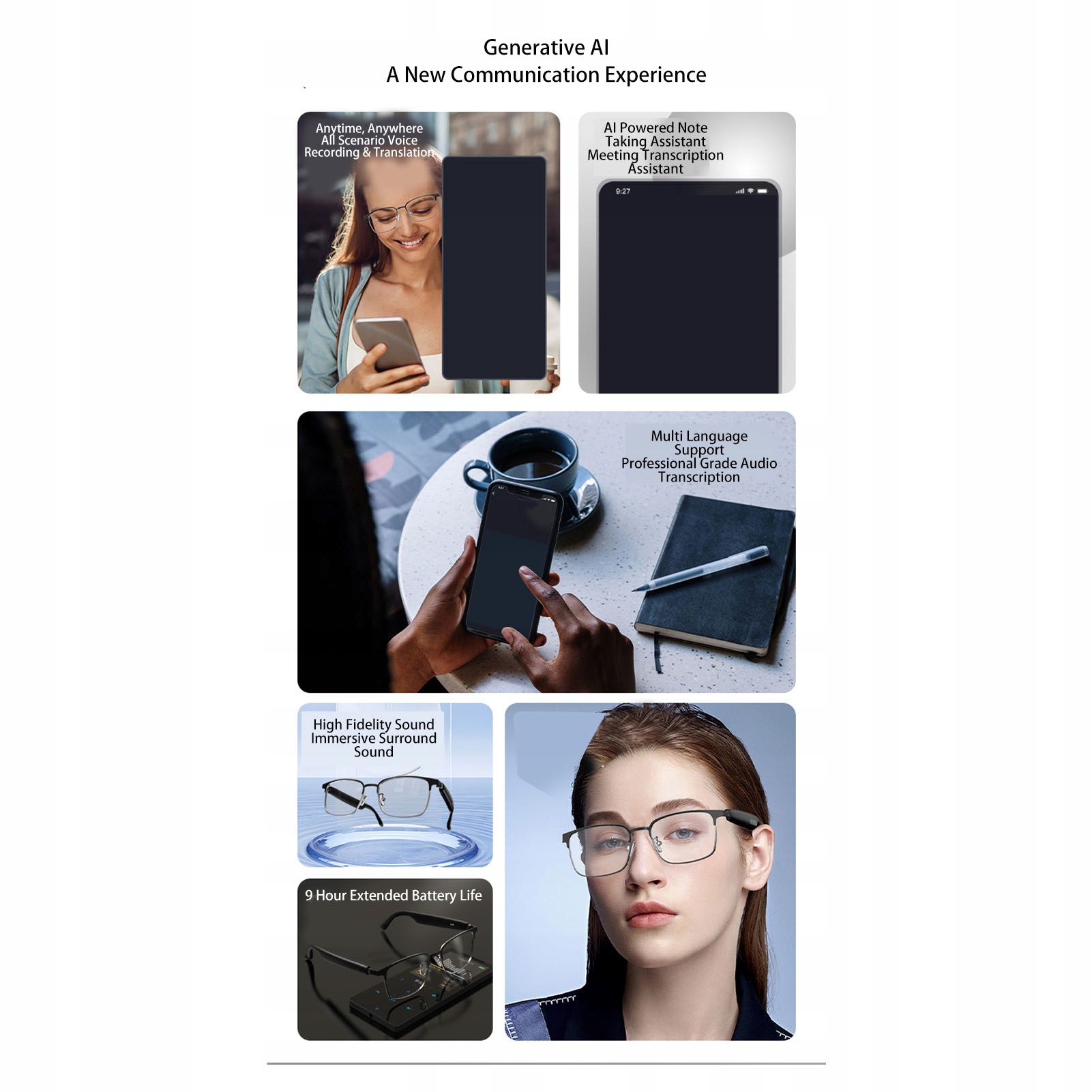 1. ШІ ПЕРЕКЛАД: окуляри для перекладу миттєво перекладають 172 мови з високою точністю, долаючи комунікаційні бар’єри, що ідеально підходить для мандрівників і міжнародних професіоналів.