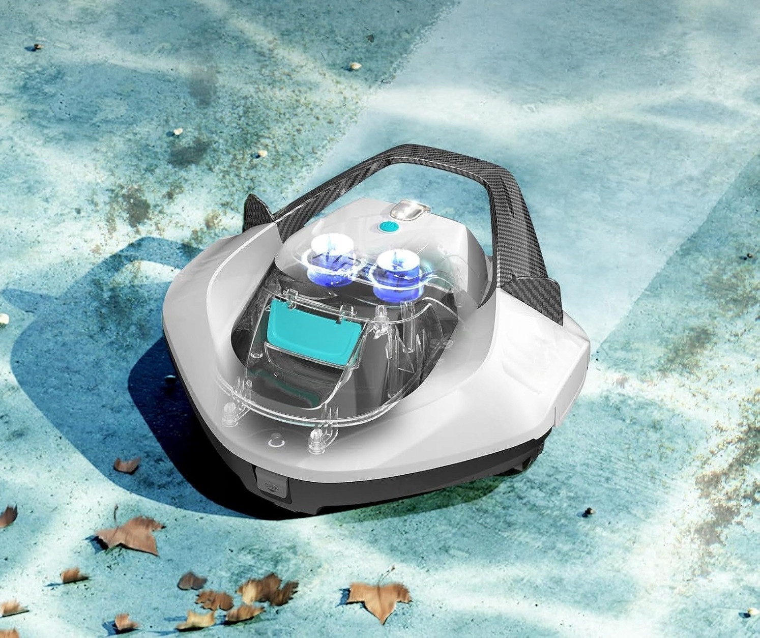 - Простий у використанні та очищенні: його вага лише 3,7 кг дуже простий у використанні та експлуатації. Просто увімкніть пристрій, опустіть його у воду та запустіть. Очисник басейну виконує свої завдання автоматично, без необхідності моніторингу. Камеру фільтра легко чистити: достатньо зняти кришку і промити фільтр за допомогою шланга. Підходить для всіх покриттів (ПВХ, плитки, вінілу чи бетону).