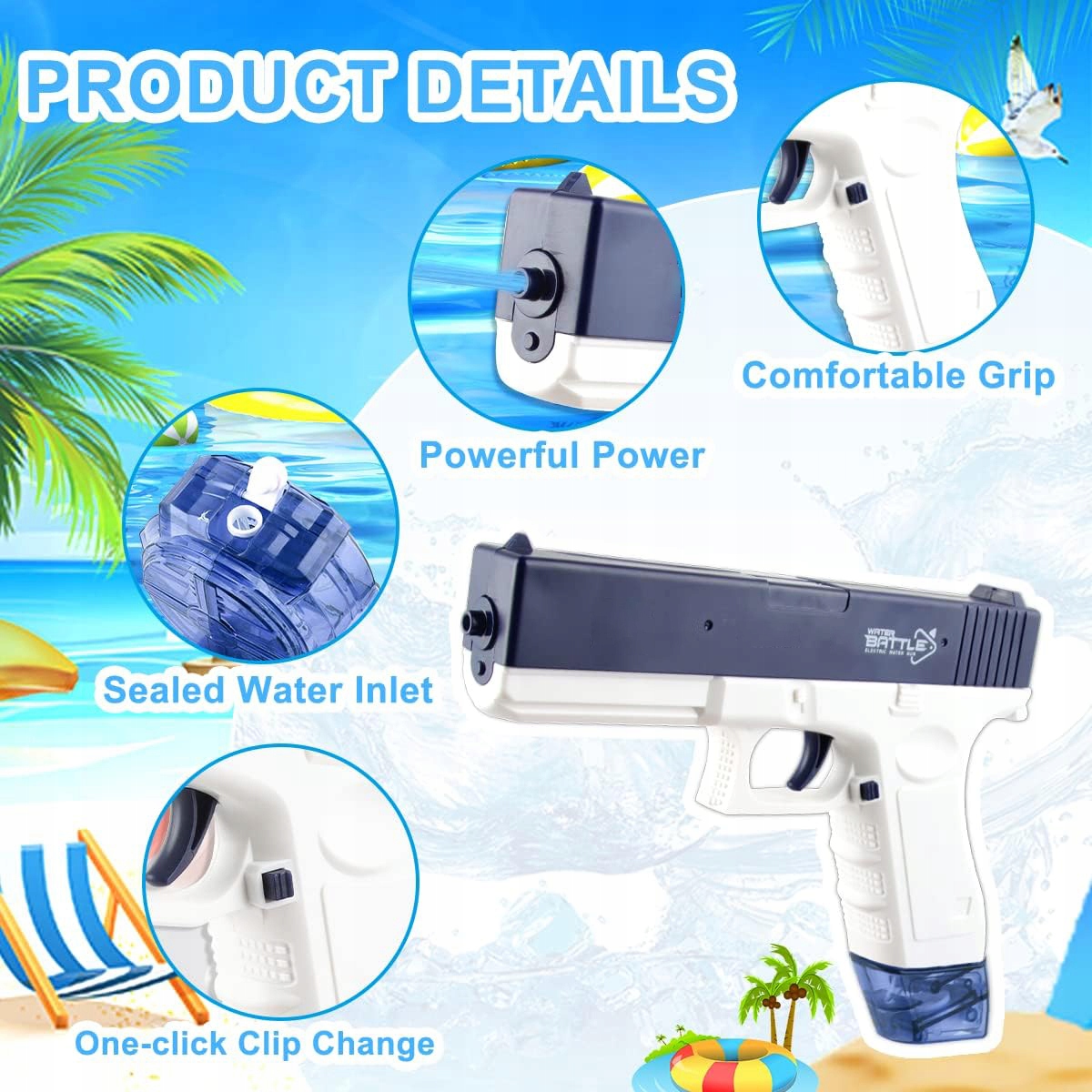 ✅Повністю автоматичний електричний водяний пістолет: із цим електричним водяним пістолетом вам більше не потрібно вручну накачувати його тиском, ви можете запустити його лише одним натисканням кнопки! Тож організуйте захоплюючу битву з водяною зброєю зі своїми друзями чи дітьми в цей захоплюючий сезон!